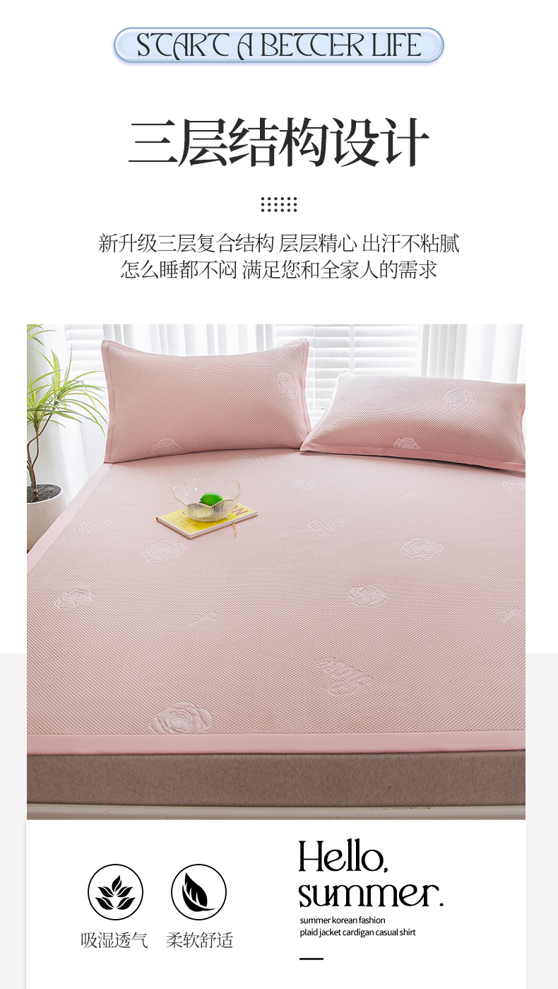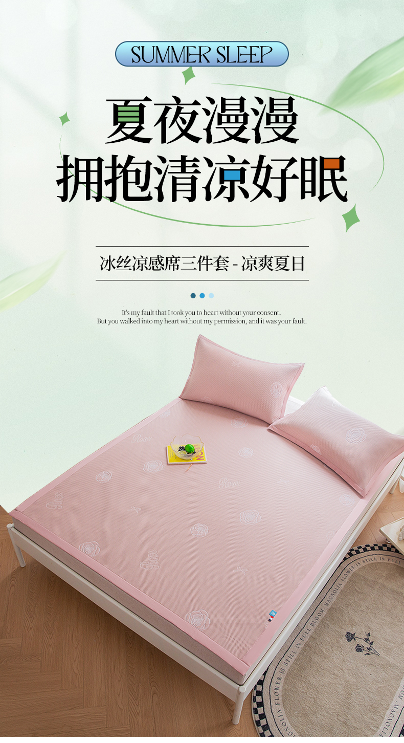 宜派家纺 2024新款单面凉感席三件套-夏日玫瑰 夏日玫瑰-粉
