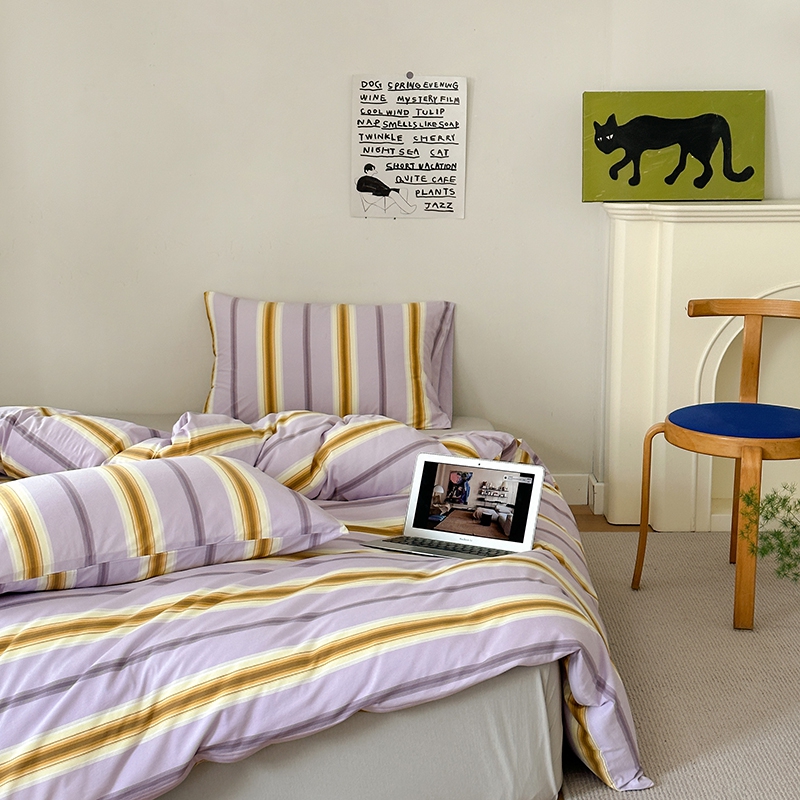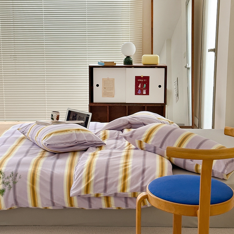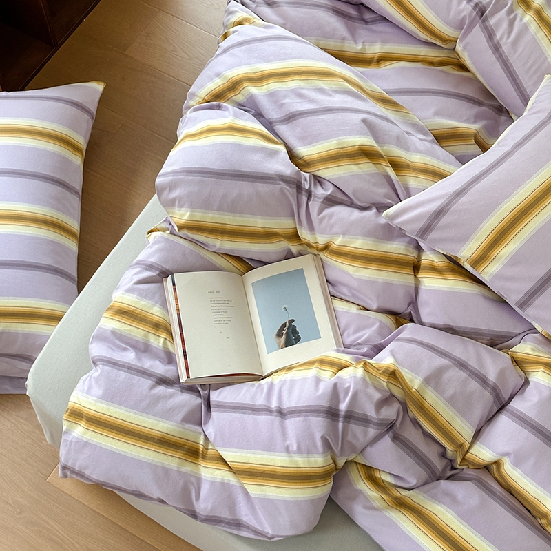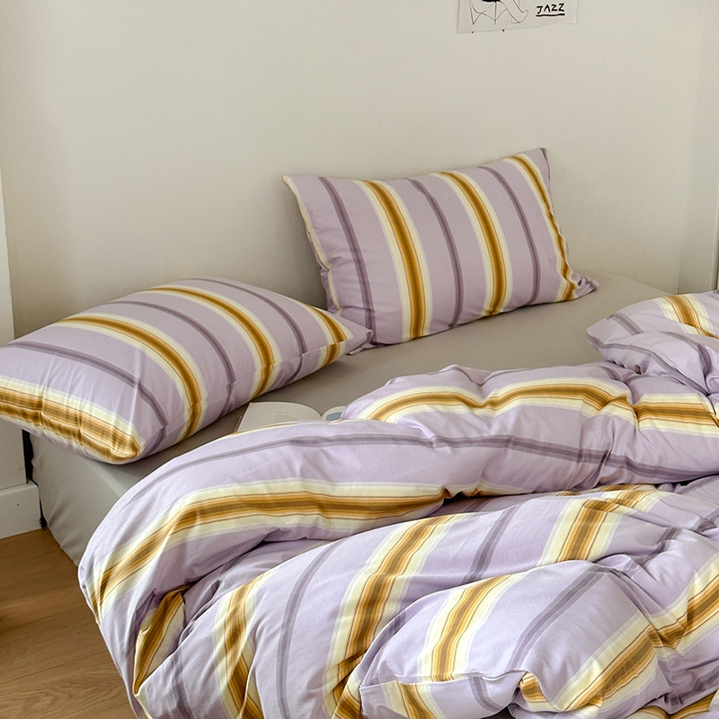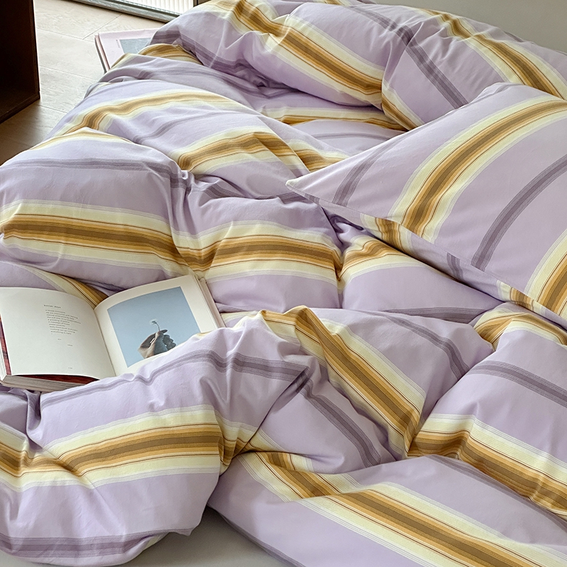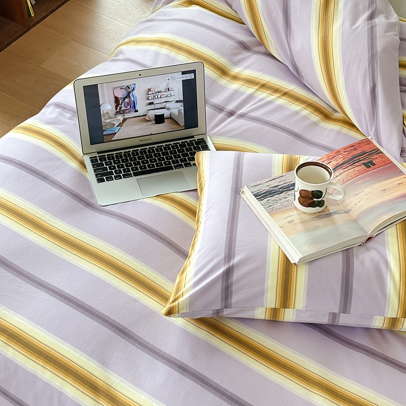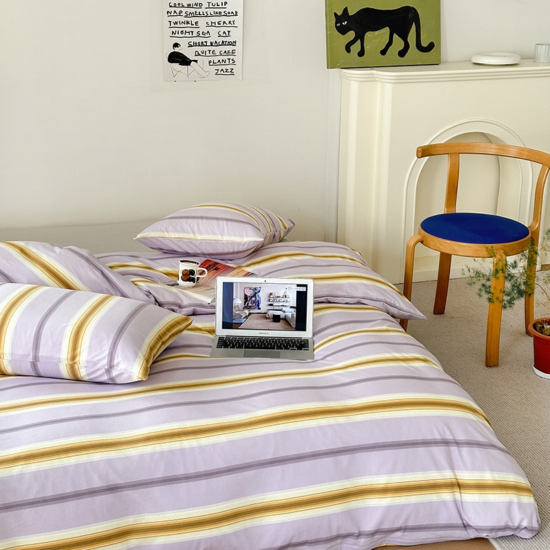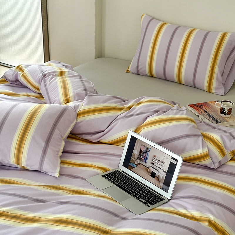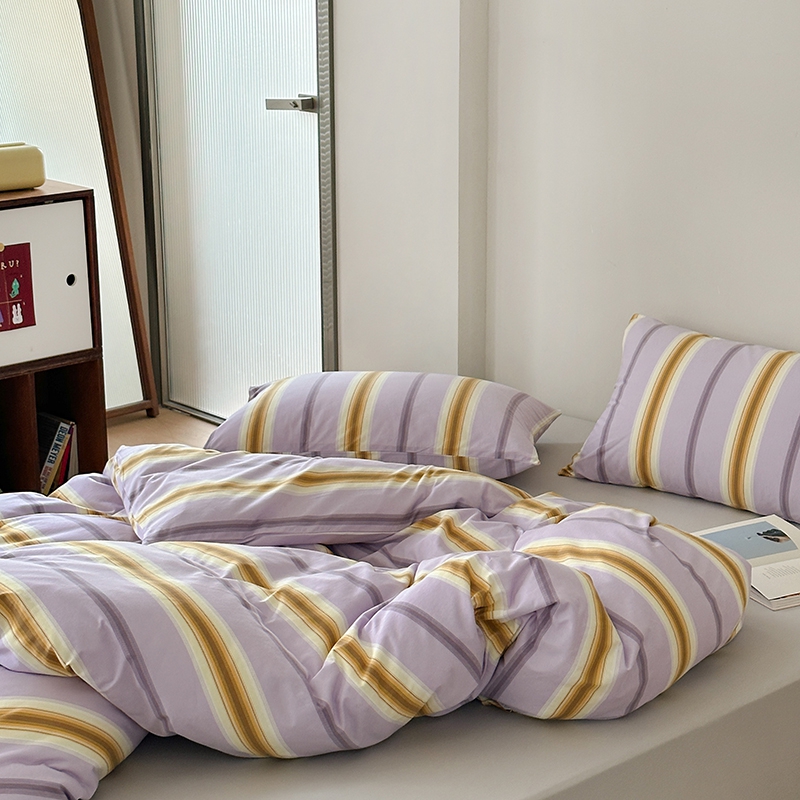 恋尚羽家纺 2025新款A类母婴级印花全棉针织棉四件套 多彩条
