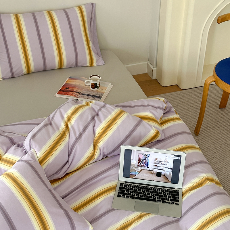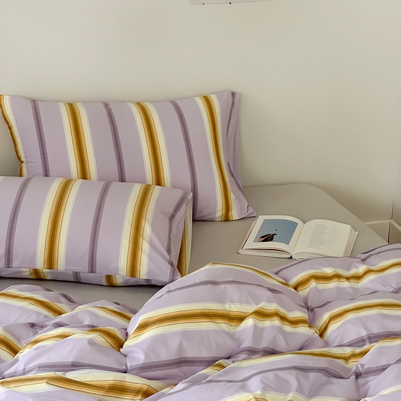 商品名称:恋尚羽家纺 2025新款A类母婴级印花全棉针织棉四件套 多彩条