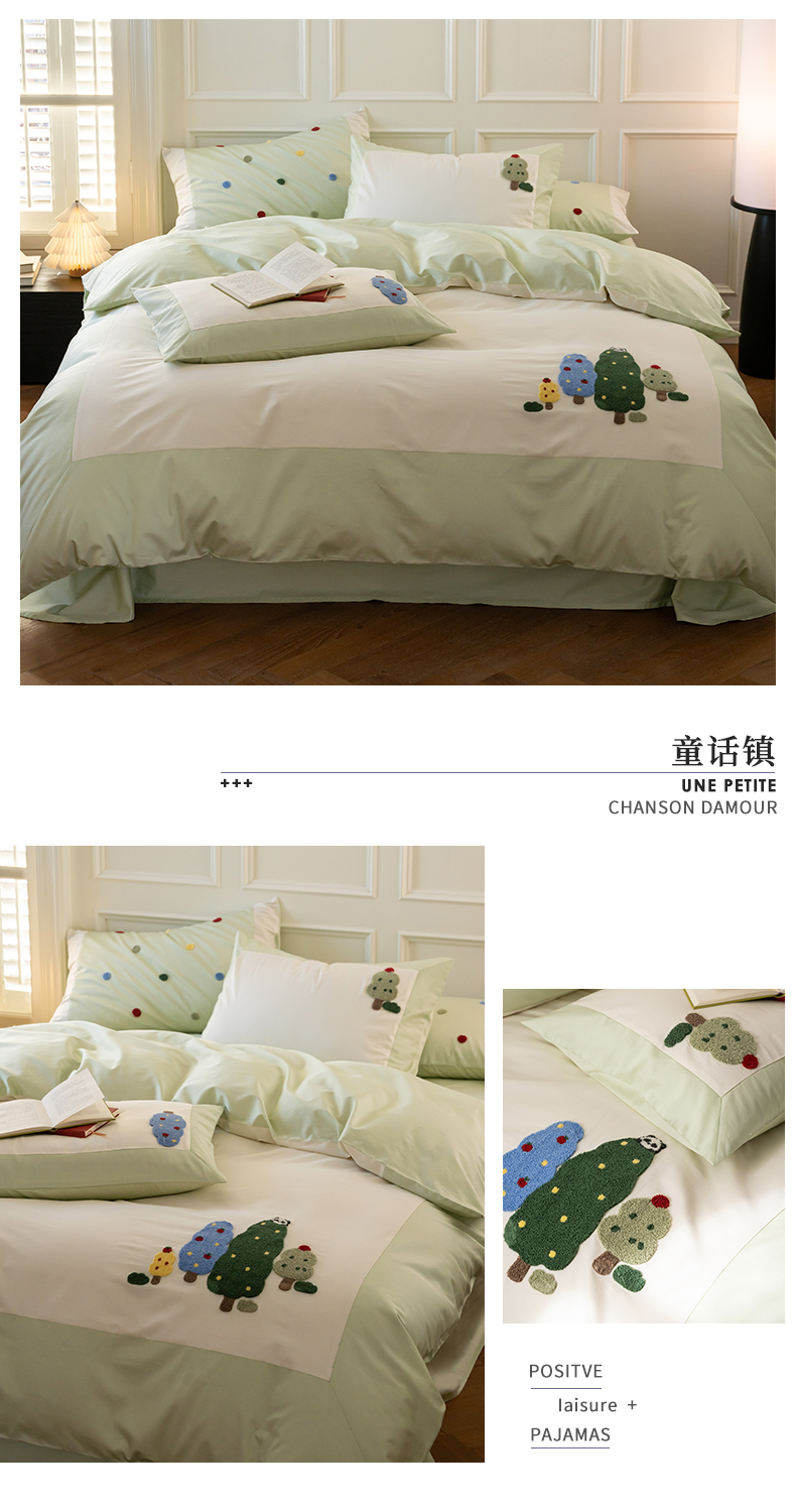 商品名称:泽西家纺 2024新款全棉水洗棉毛巾绣大拼角四件套 童话镇