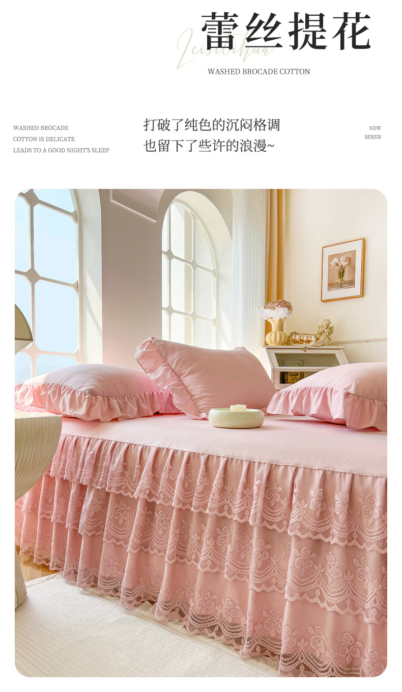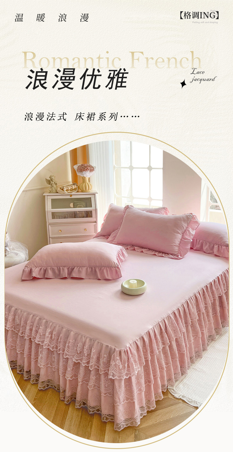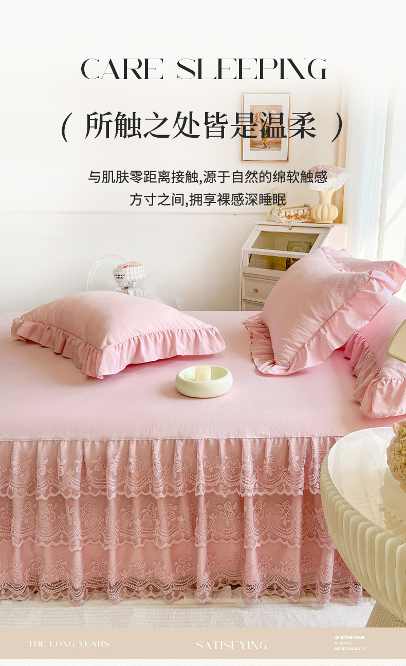 商品名称:乐朵家居 2025春夏 L-3花颂 蕾丝床裙 豆沙