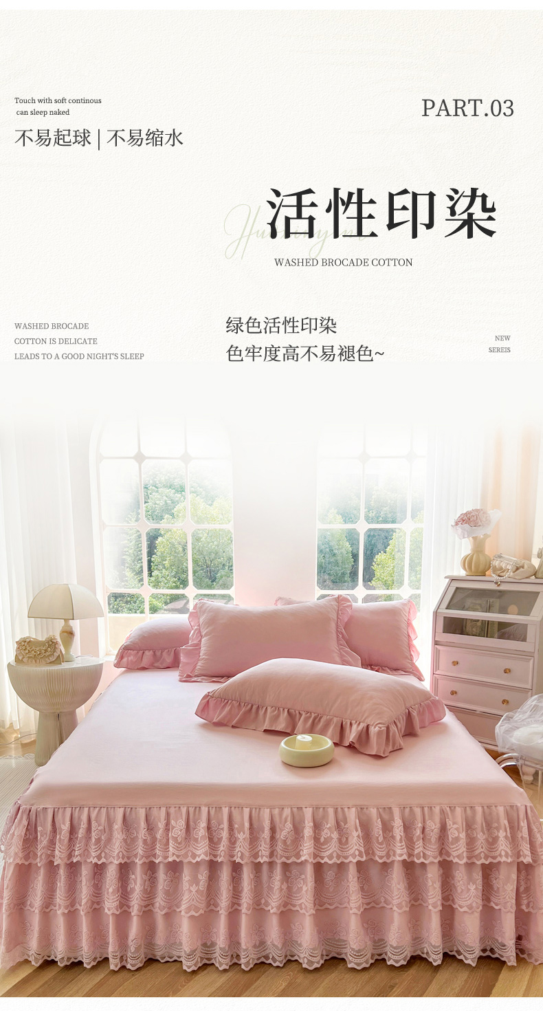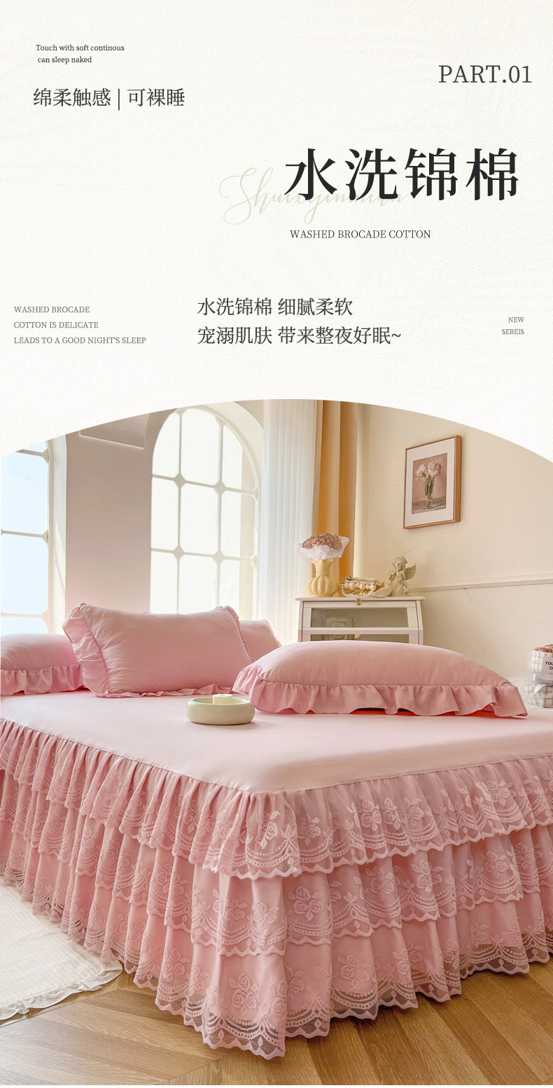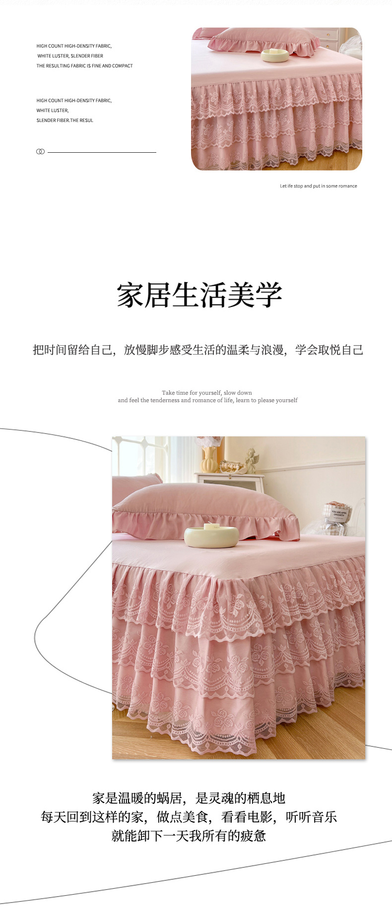 商品名称:乐朵家居 2025春夏 L-3花颂 蕾丝床裙 豆沙