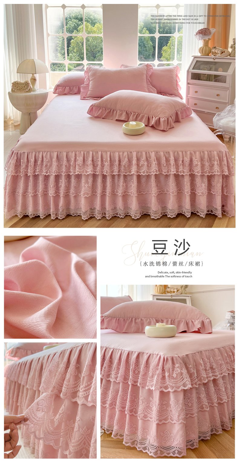 (总)乐朵家居 2025新款 25-1 芯语 蕾丝床裙,豆沙,灰,卡其,绿,米,紫