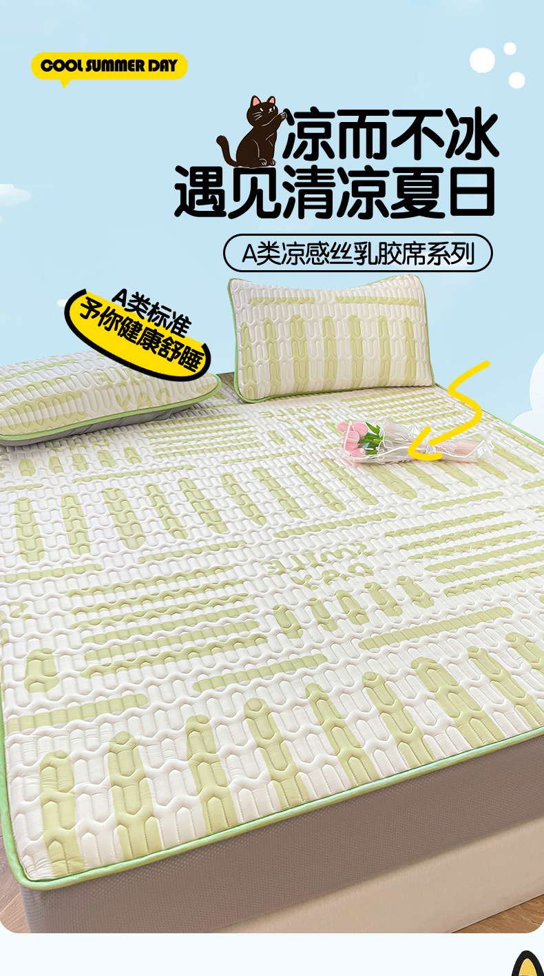 当前位置: 91家纺网 > 商品网购 > 床上用品 > 凉席 > 乳胶凉席 > 布卢姆床垫 2025新款5mmA类乳胶凉席床笠套件夏被组合 简格