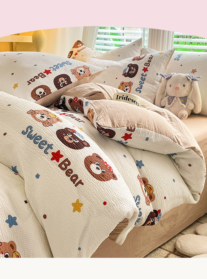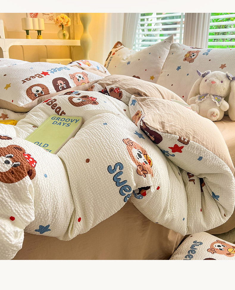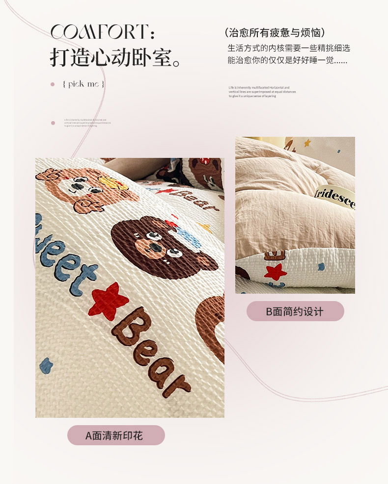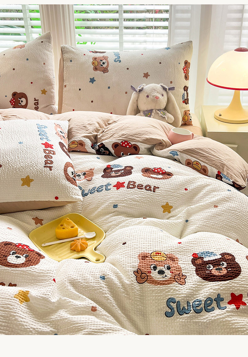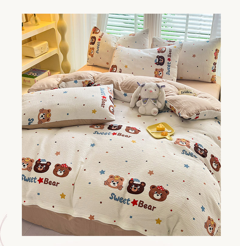当前位置: 91家纺网 > 商品网购 > 床品套件 > 四件套 > 水洗棉四件套 > 妖妖家纺 2024新款有氧水洗泡泡棉印花四套泡芙棉四件套 三只小熊