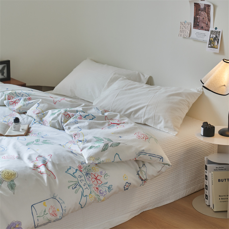 窝米 2020春夏新品全棉13372四件套小波西风系列小花花,小花花