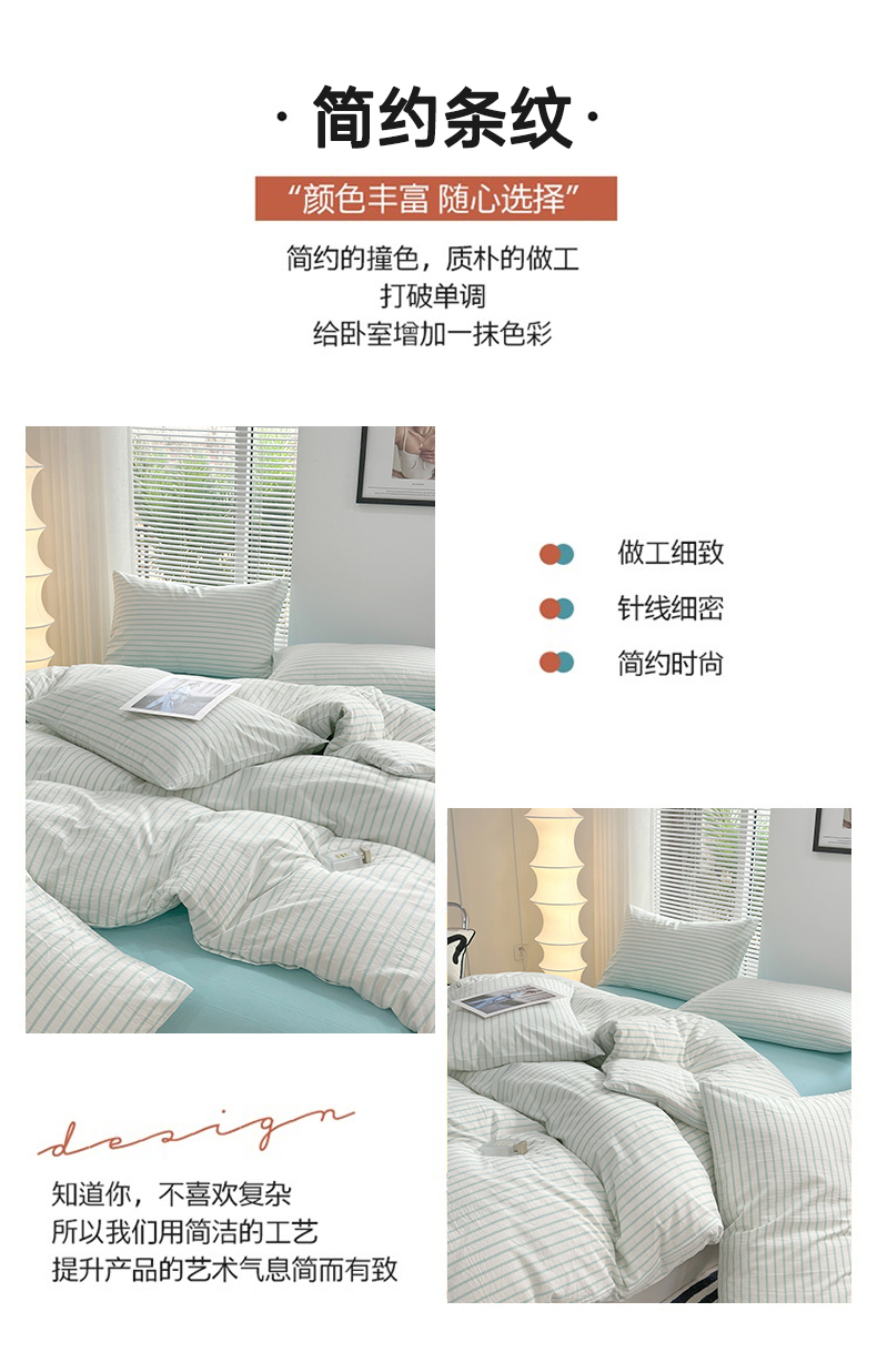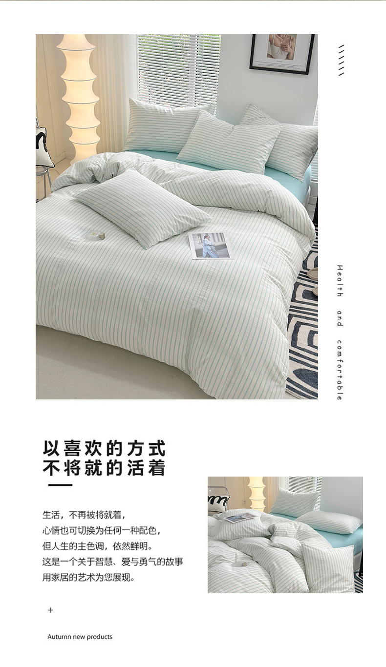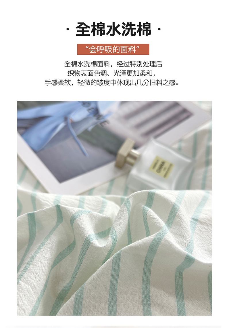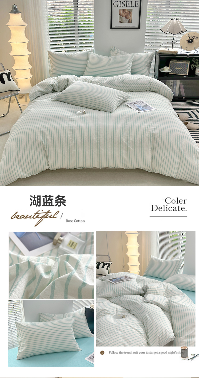 当前位置: 91家纺网 > 商品网购 > 床品套件 > 四件套 > 水洗棉四件套 > 价格下调三沁直播爆款AAB版纯棉全棉色织水洗棉简约格子式四件套(床单直角)湖蓝条