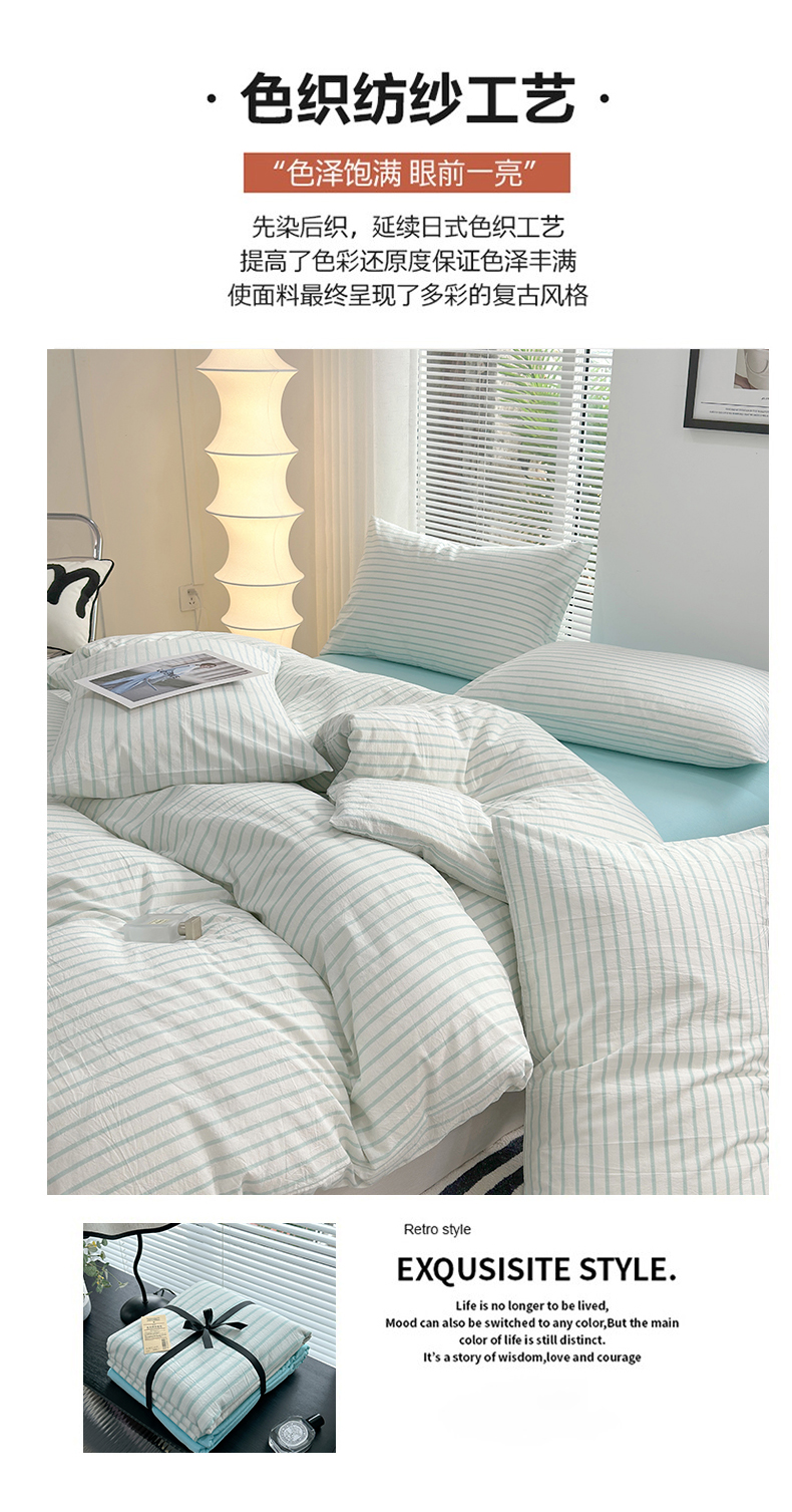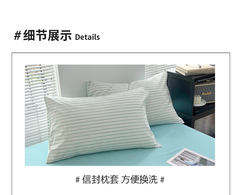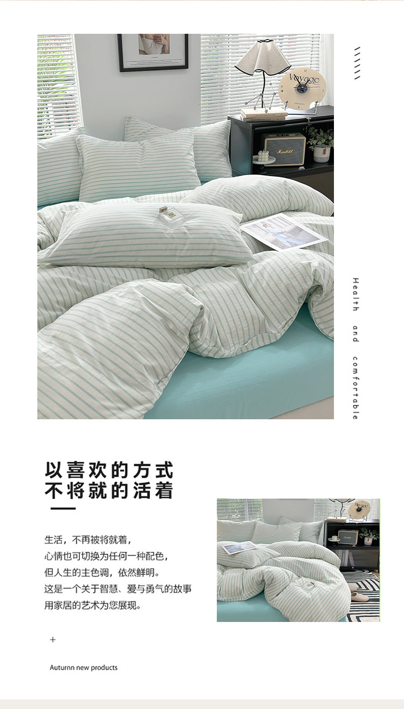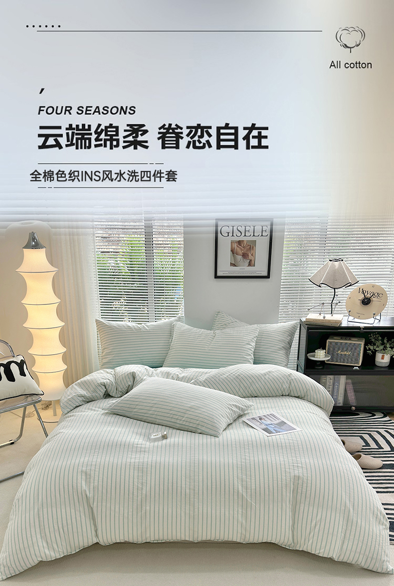 当前位置: 91家纺网 > 商品网购 > 床品套件 > 四件套 > 水洗棉四件套 > 价格下调三沁直播爆款AAB版纯棉全棉色织水洗棉简约格子式四件套(床单直角)湖蓝条