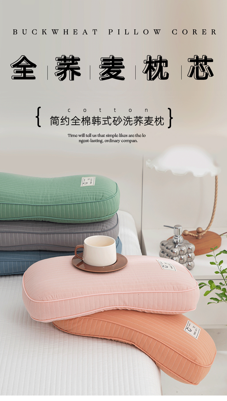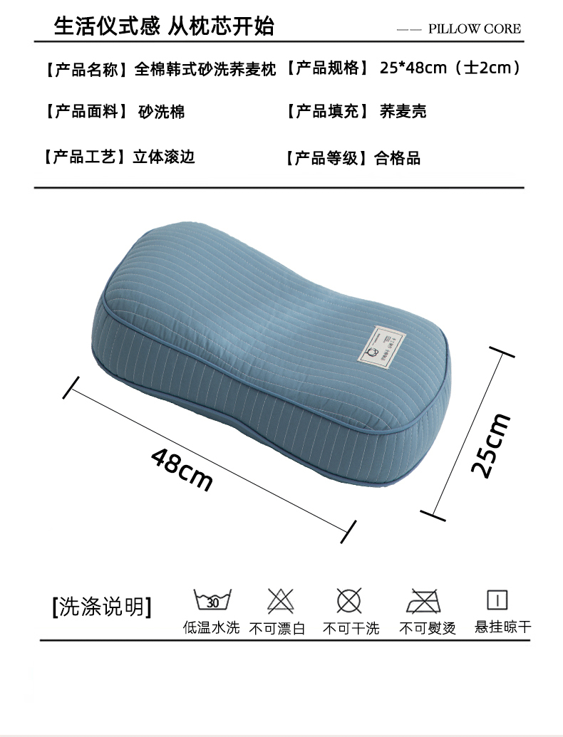 商品名称:(总)织布人 2024新款荞麦枕韩式全棉砂洗棉s腰面包荞麦枕颈椎枕午睡枕头