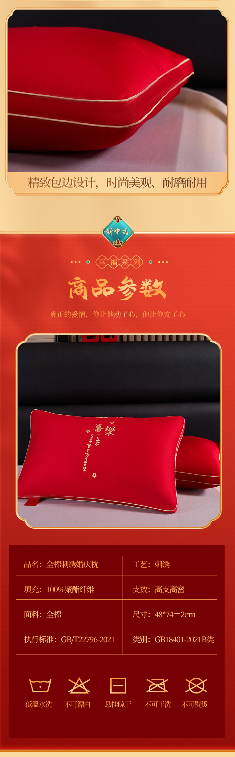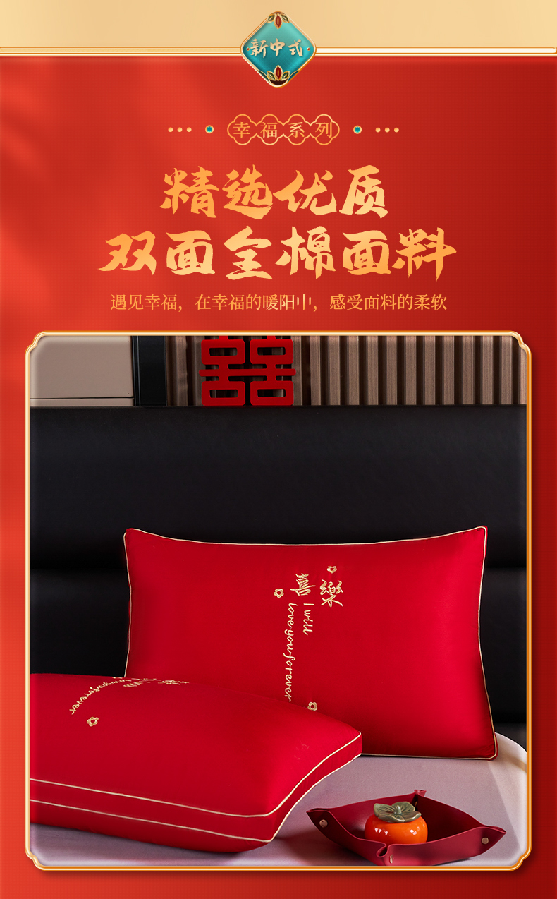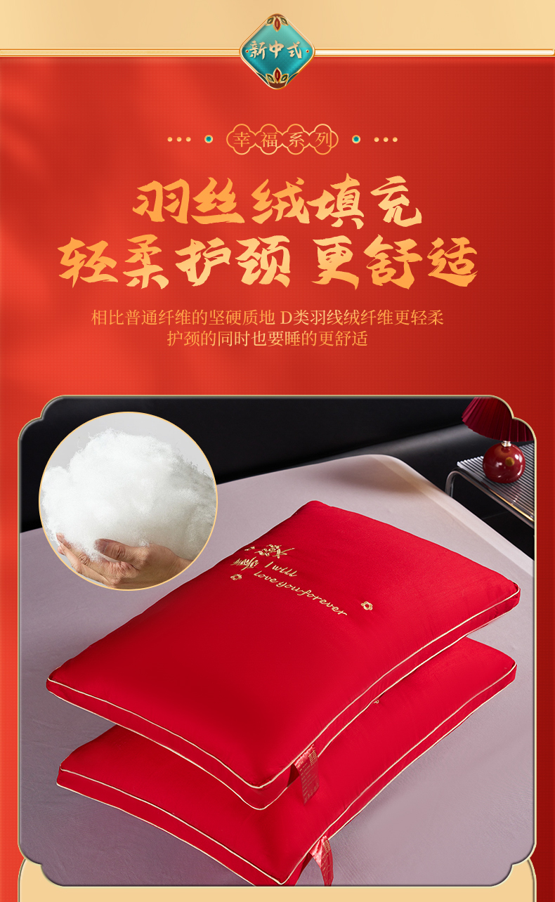 当前位置: 91家纺网 > 商品网购 > 枕头/枕芯/保健枕/颈椎枕 > 普通枕芯 > 贤内助 2024新款全棉婚庆羽丝枕保健枕枕头枕芯系列 喜乐 48*74cm/只