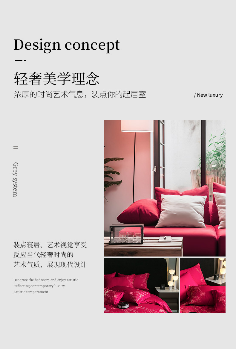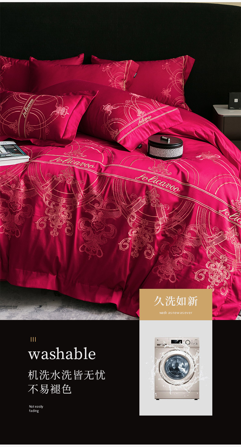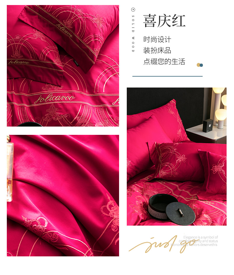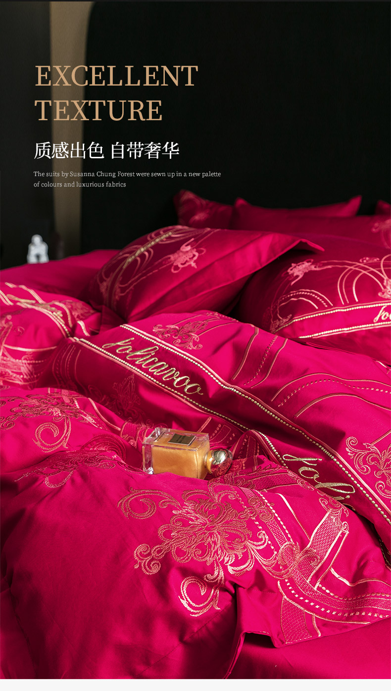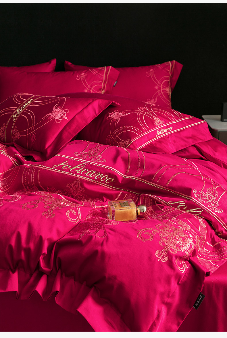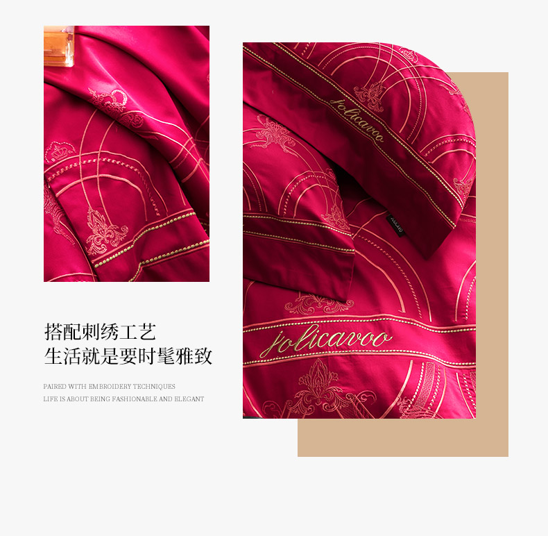 商品名称: 【A类母婴级】100支长绒棉四件套全棉纯棉轻奢风床单床笠款重工刺绣秋冬季新品床上用品 克里斯 温莎红