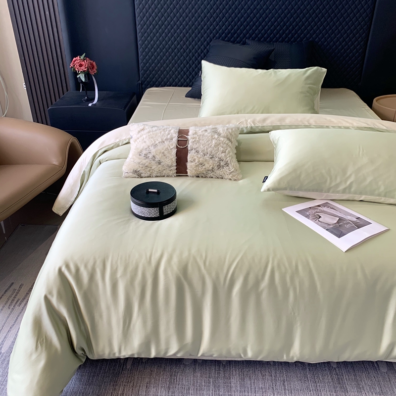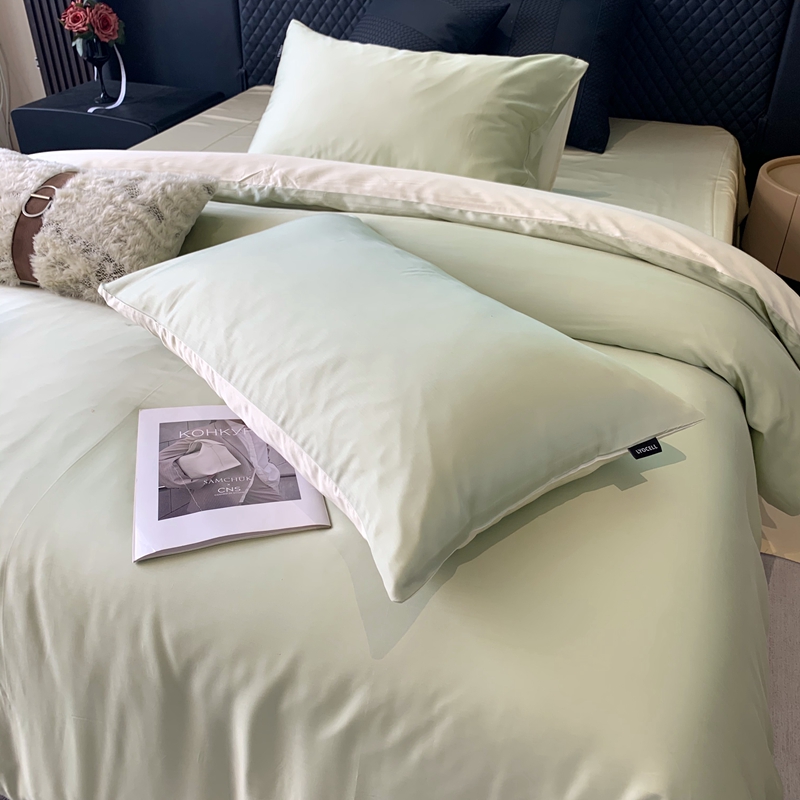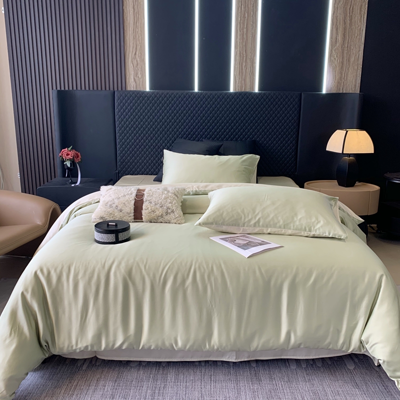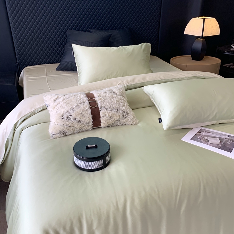 莱豫家纺 2024新款80支莱赛尔天丝纯色双拼四件套 暮光倾城绿