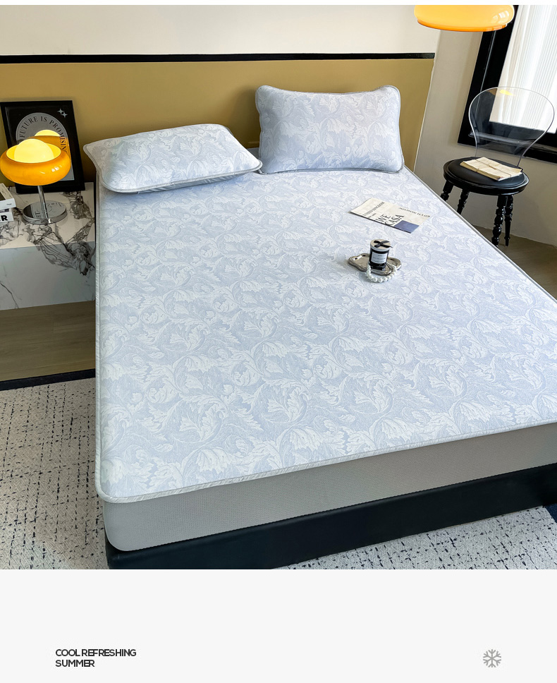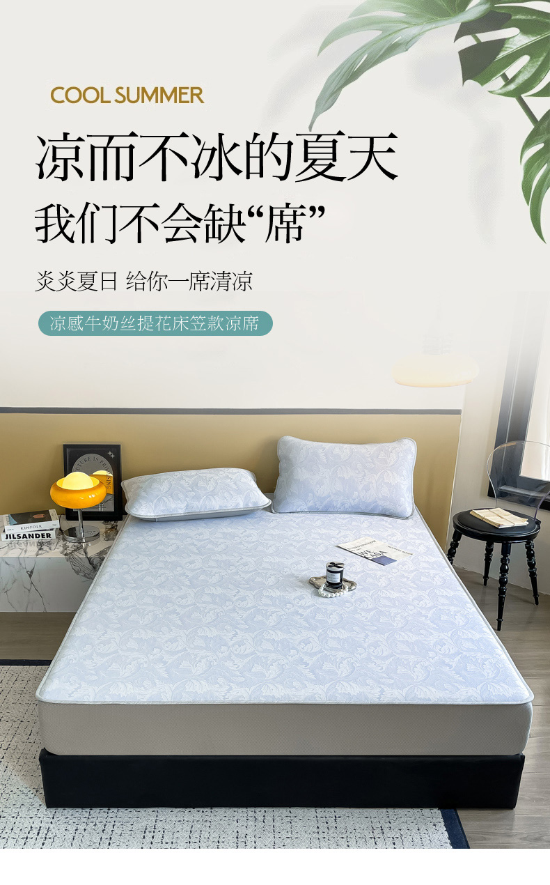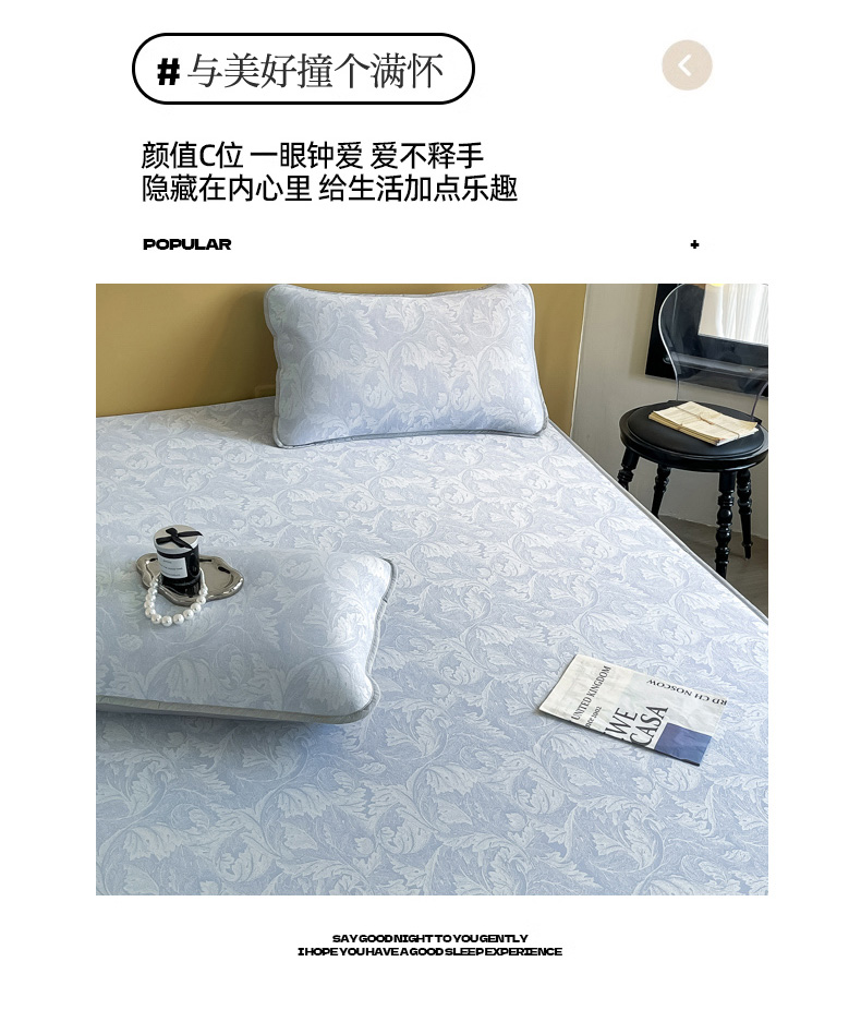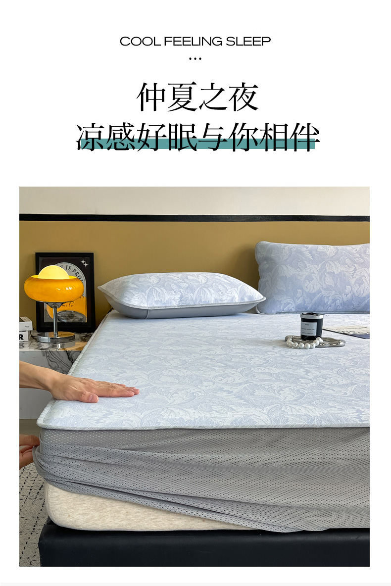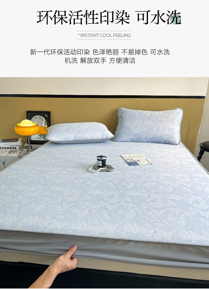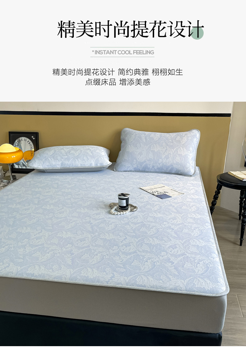 商品名称:倾慕 2024新款提花凉感凉席 床笠款叶之恋-蓝
