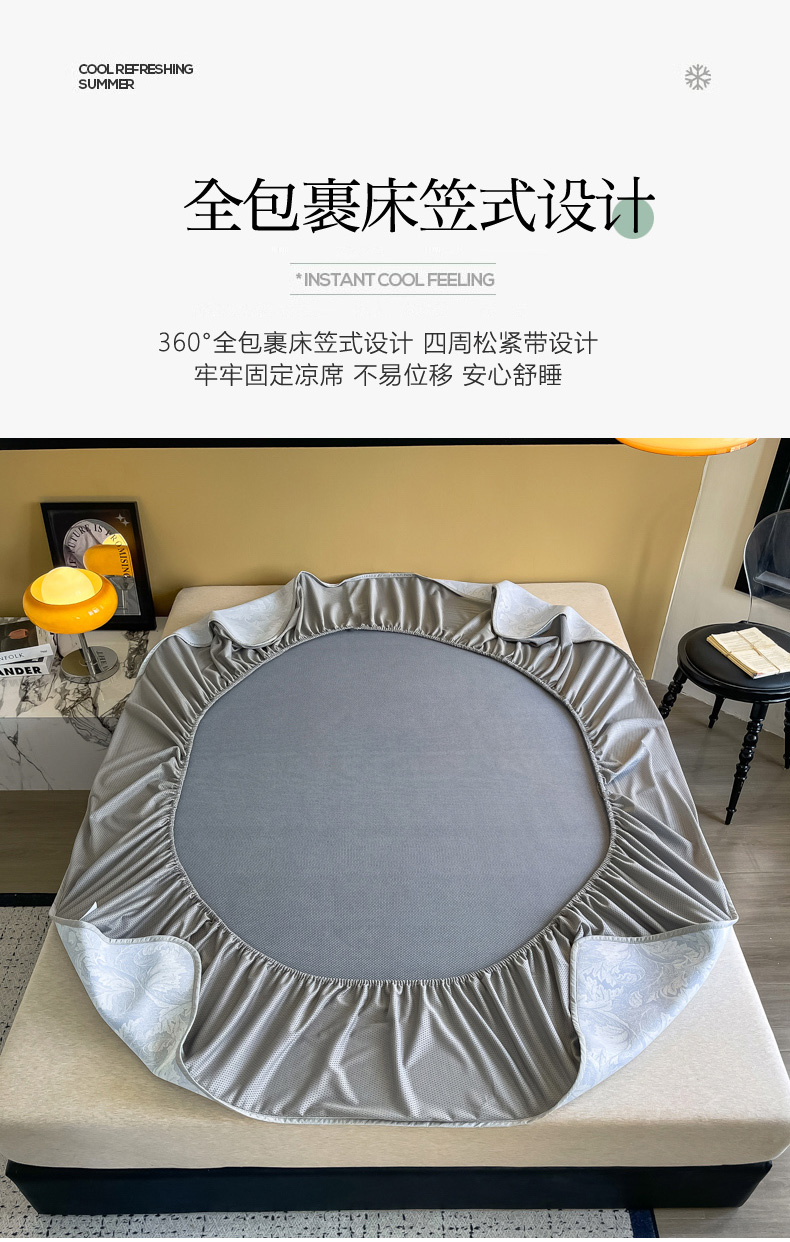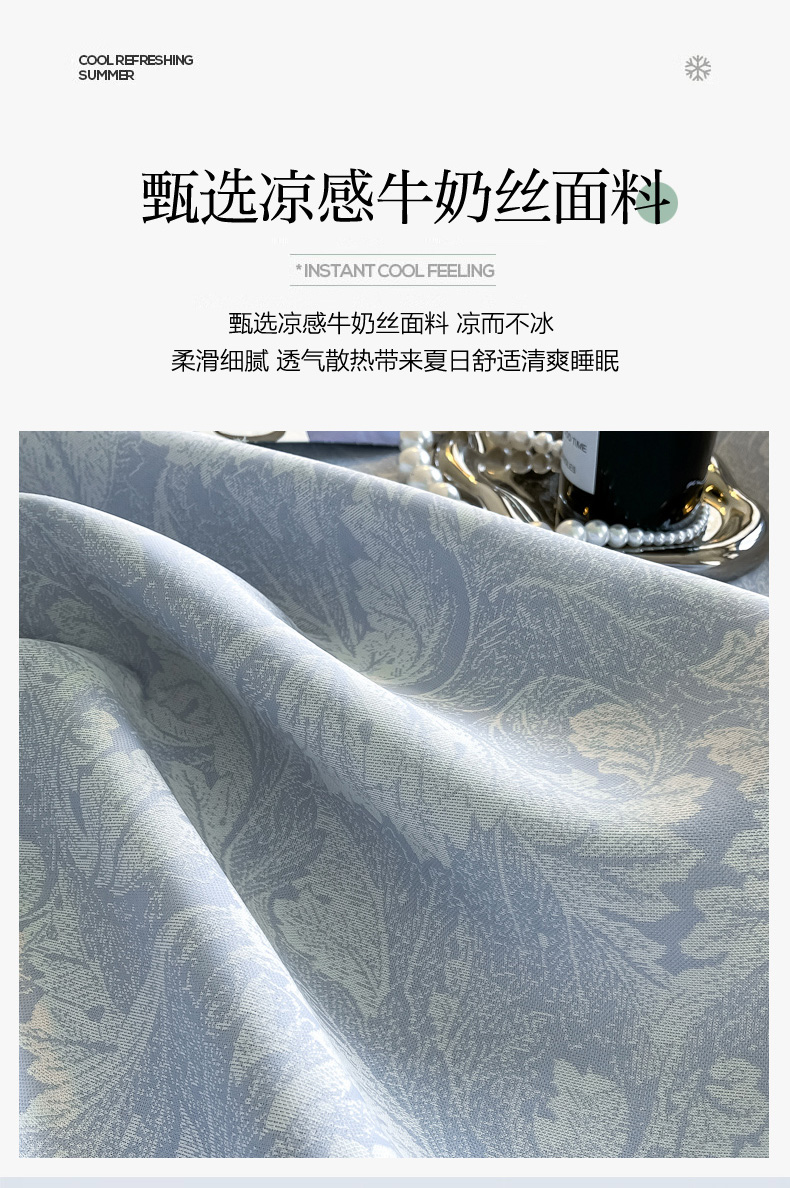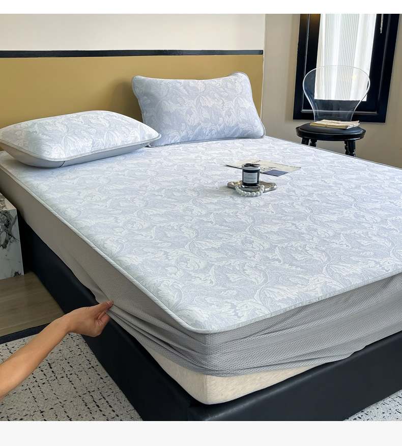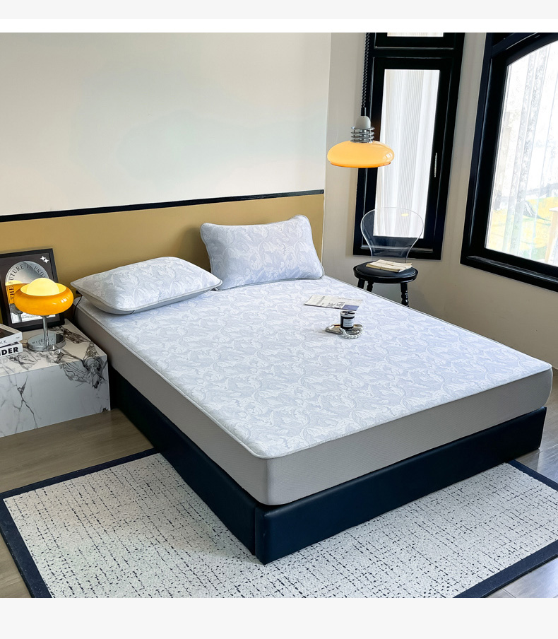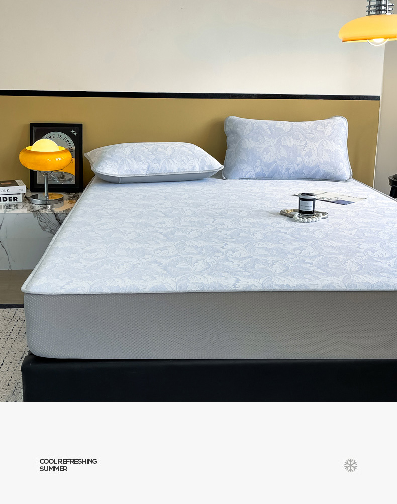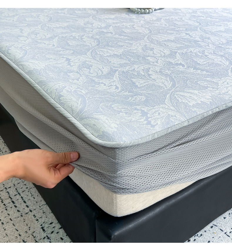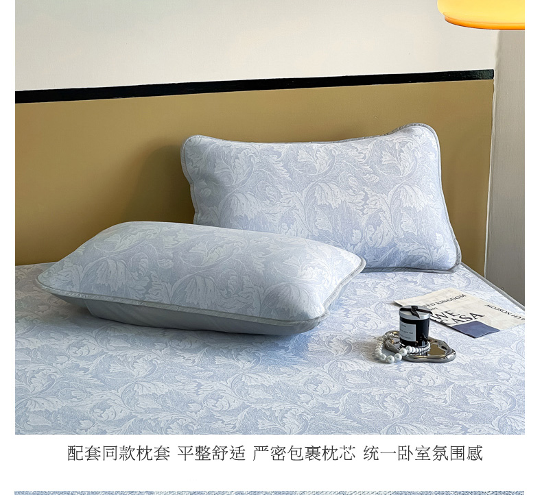 商品名称:倾慕 2024新款提花凉感凉席 床笠款叶之恋-蓝