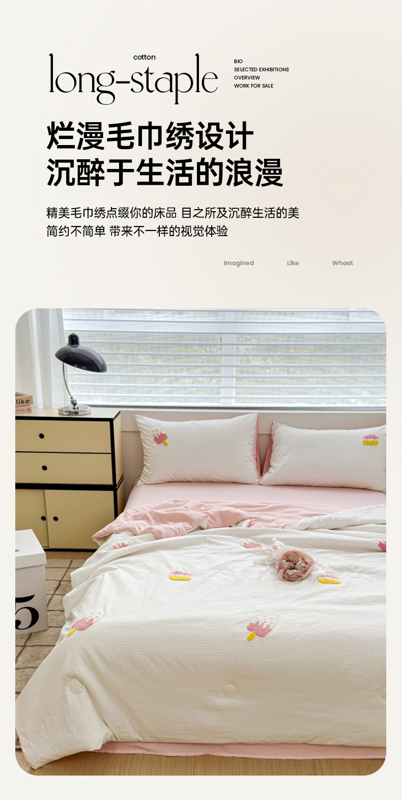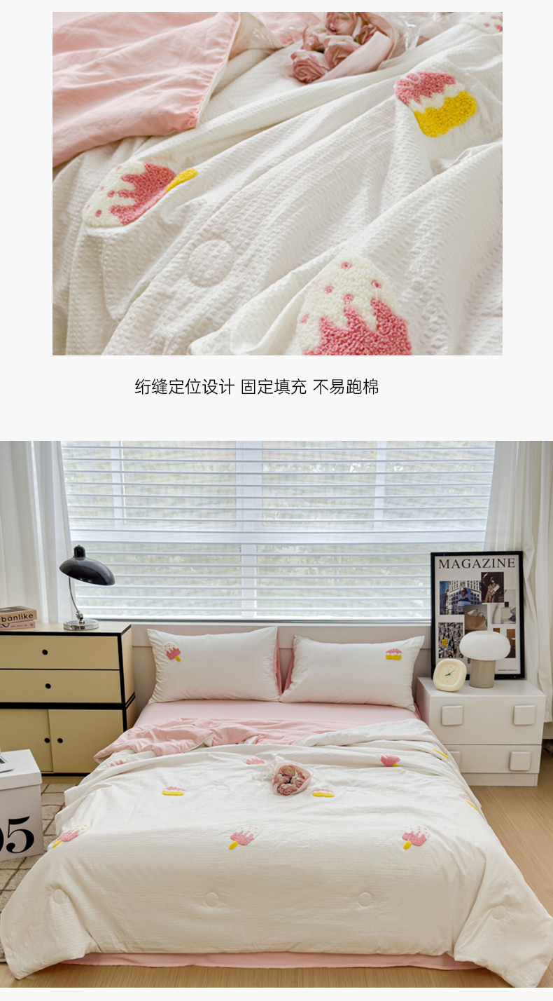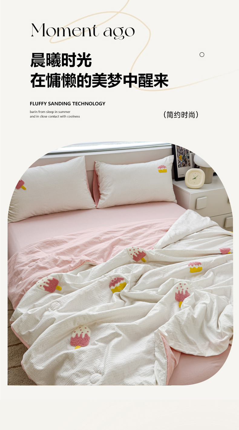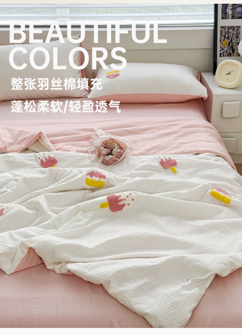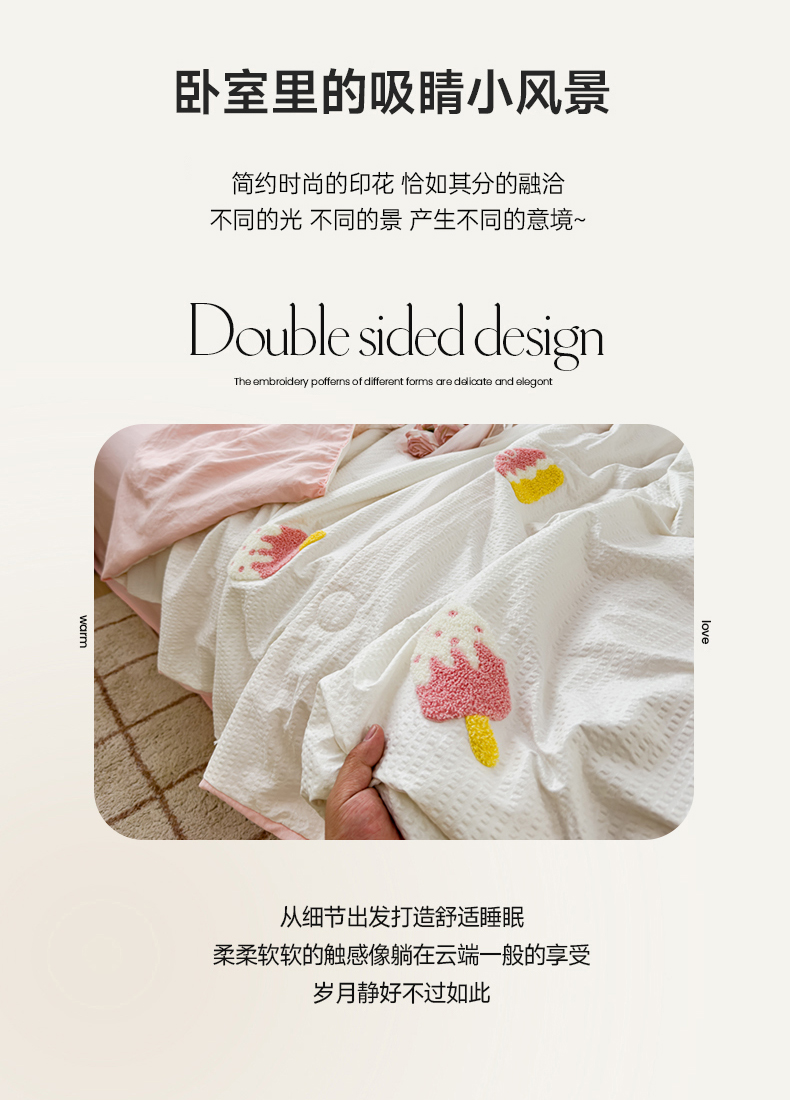 • 91家纺网 家纺一手货源 找家纺 红嘴企鹅 2025新款华夫格水洗棉毛巾绣夏被四件套 华夫格冰淇淋