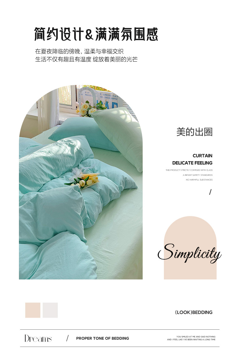 商品名称:森璐家纺 2024新款1水洗棉被套纯色被套单被套素色被套 混搭-水绿藻绿