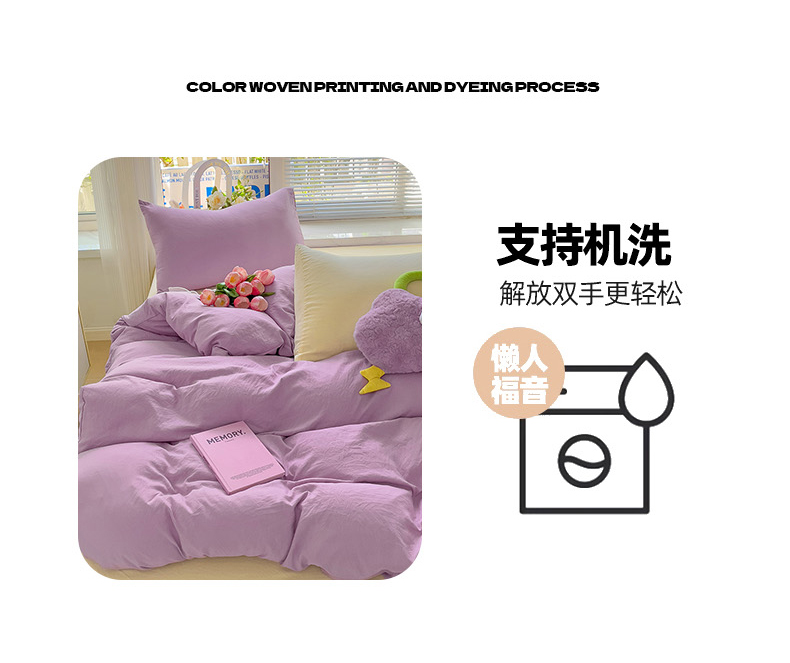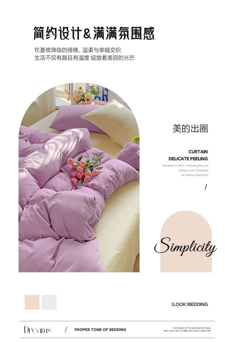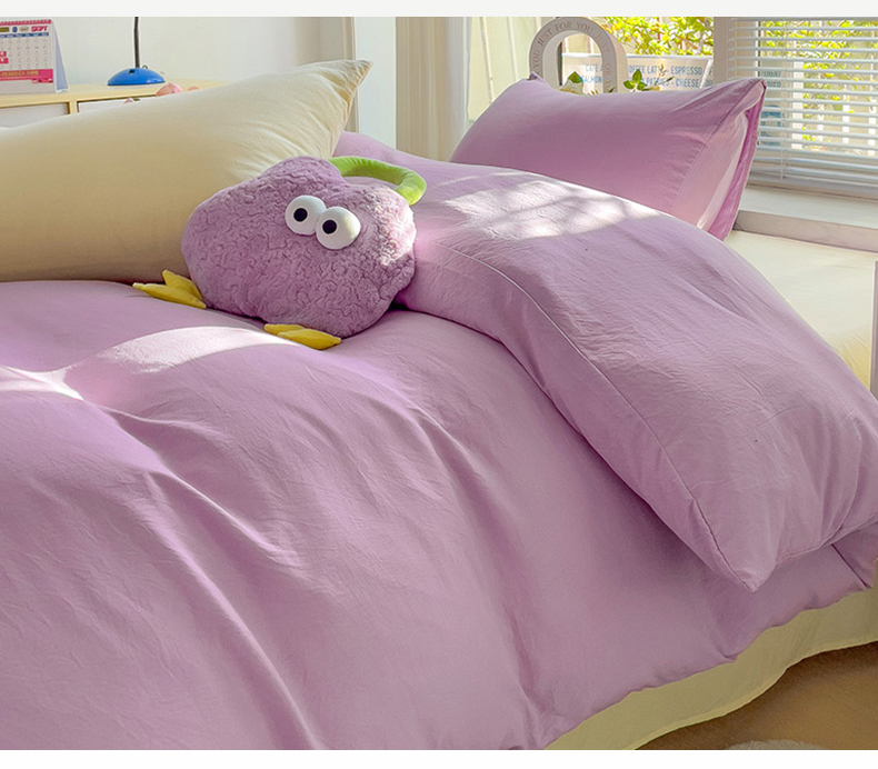 商品名称:森璐家纺 2024新款1水洗棉被套纯色被套单被套素色被套 混搭-紫黄