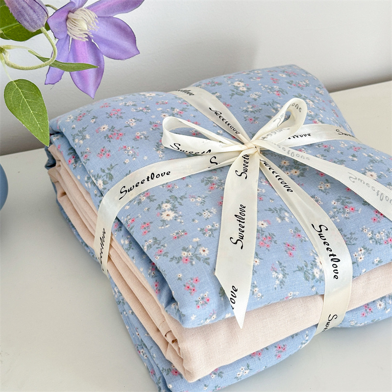 曼之夏 2024新款全棉印花双层纱四件套 蓝韵