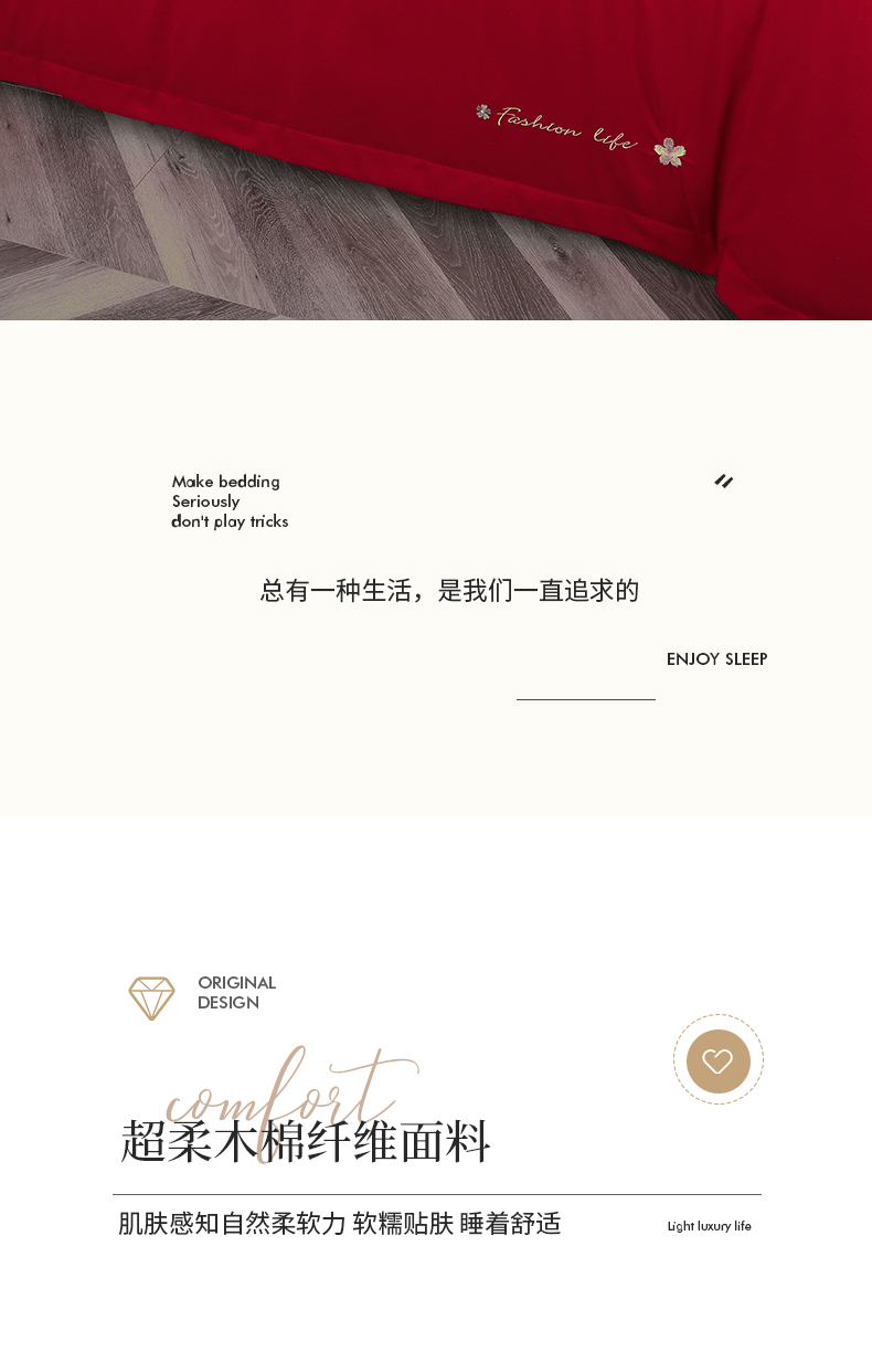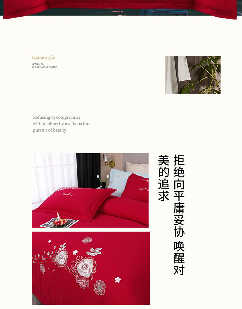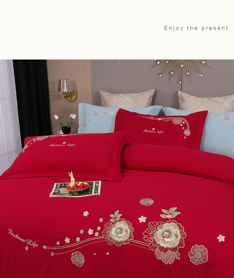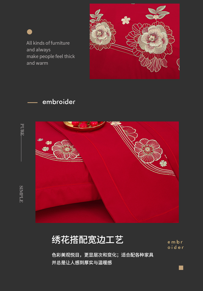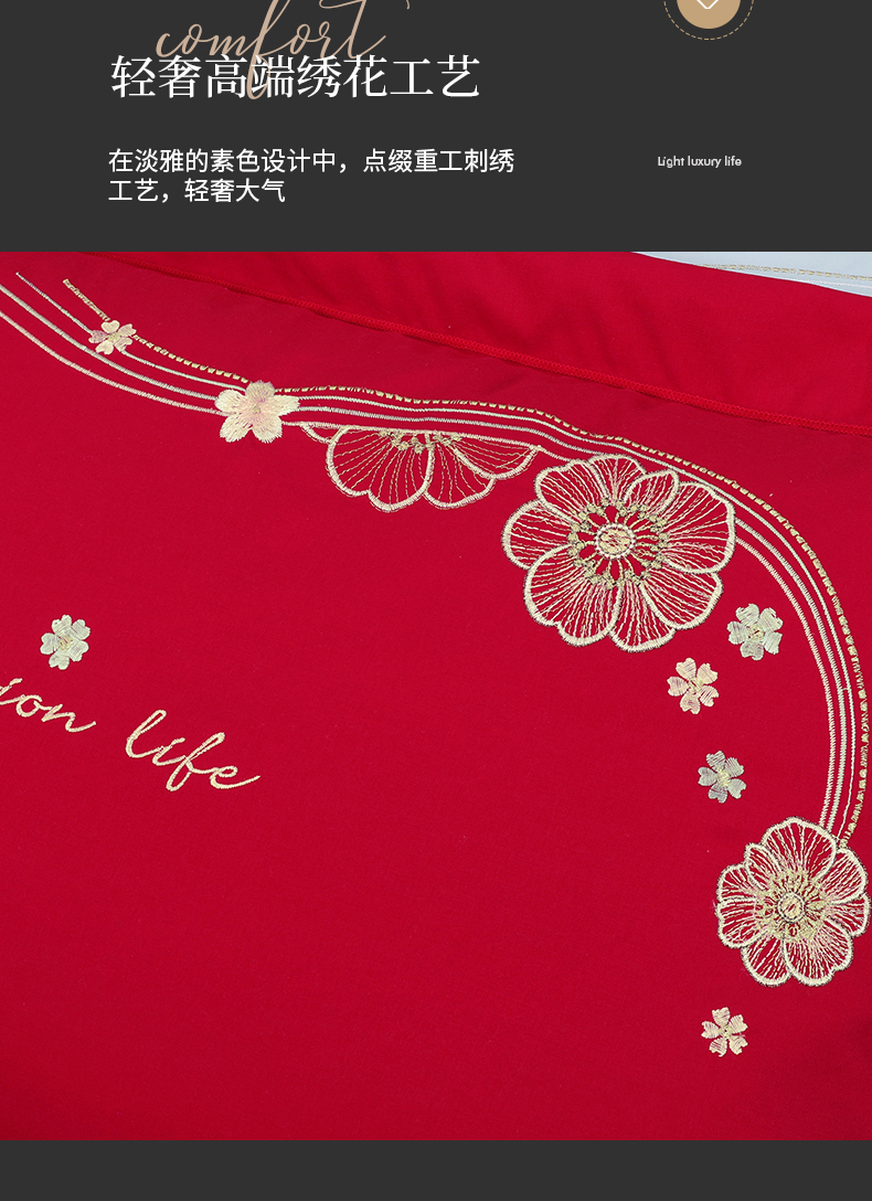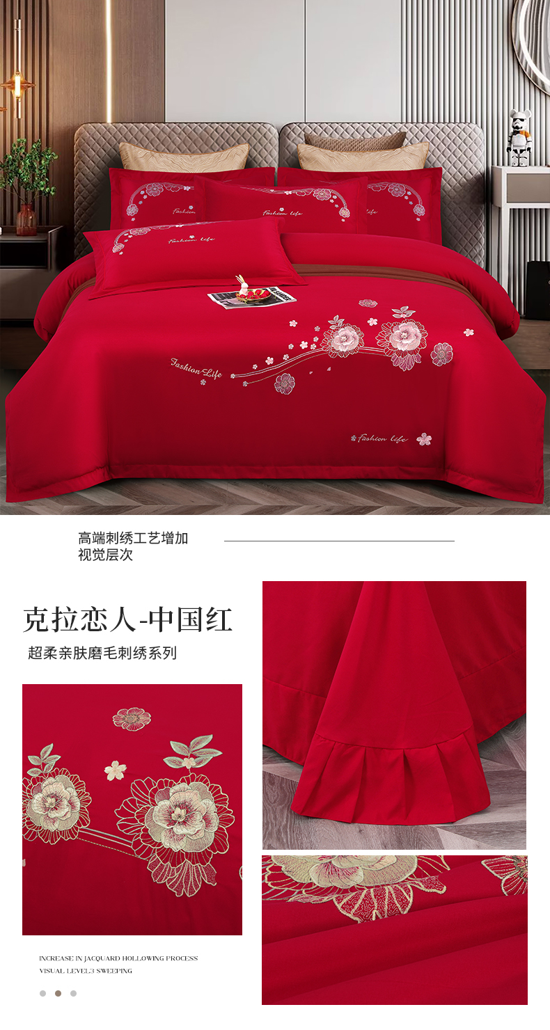 浩情国际 2026四季款斜纹木棉绣花克拉恋人系列四件套 克拉恋人-中国红
