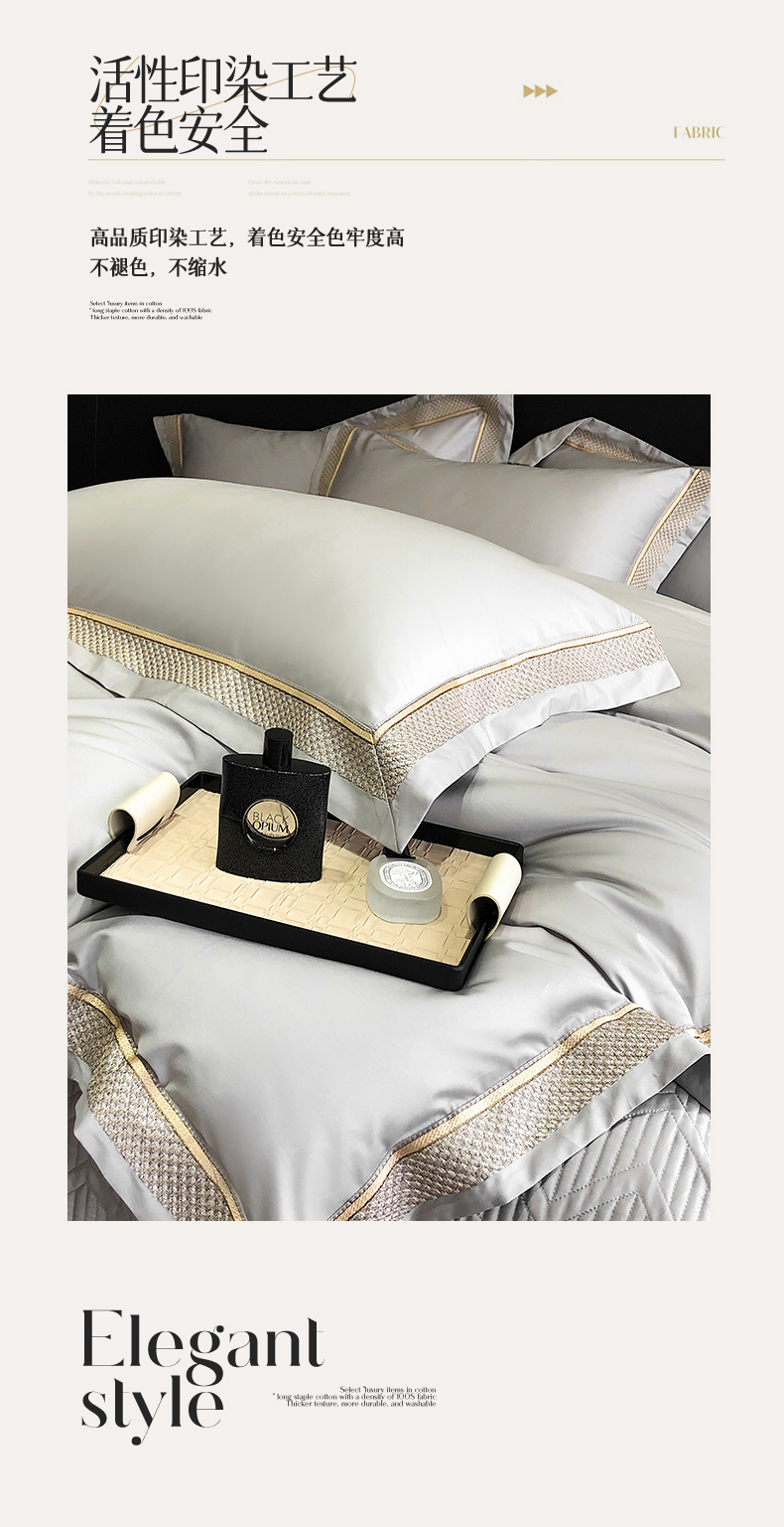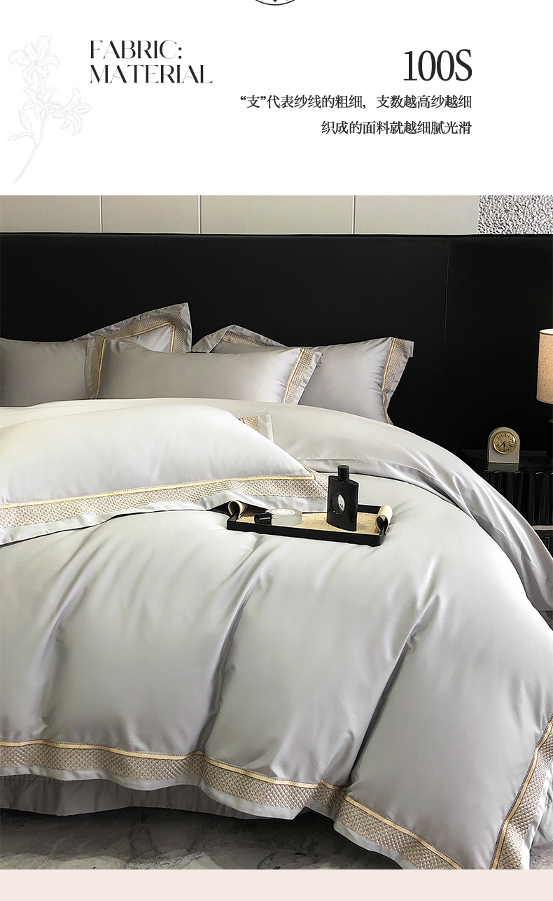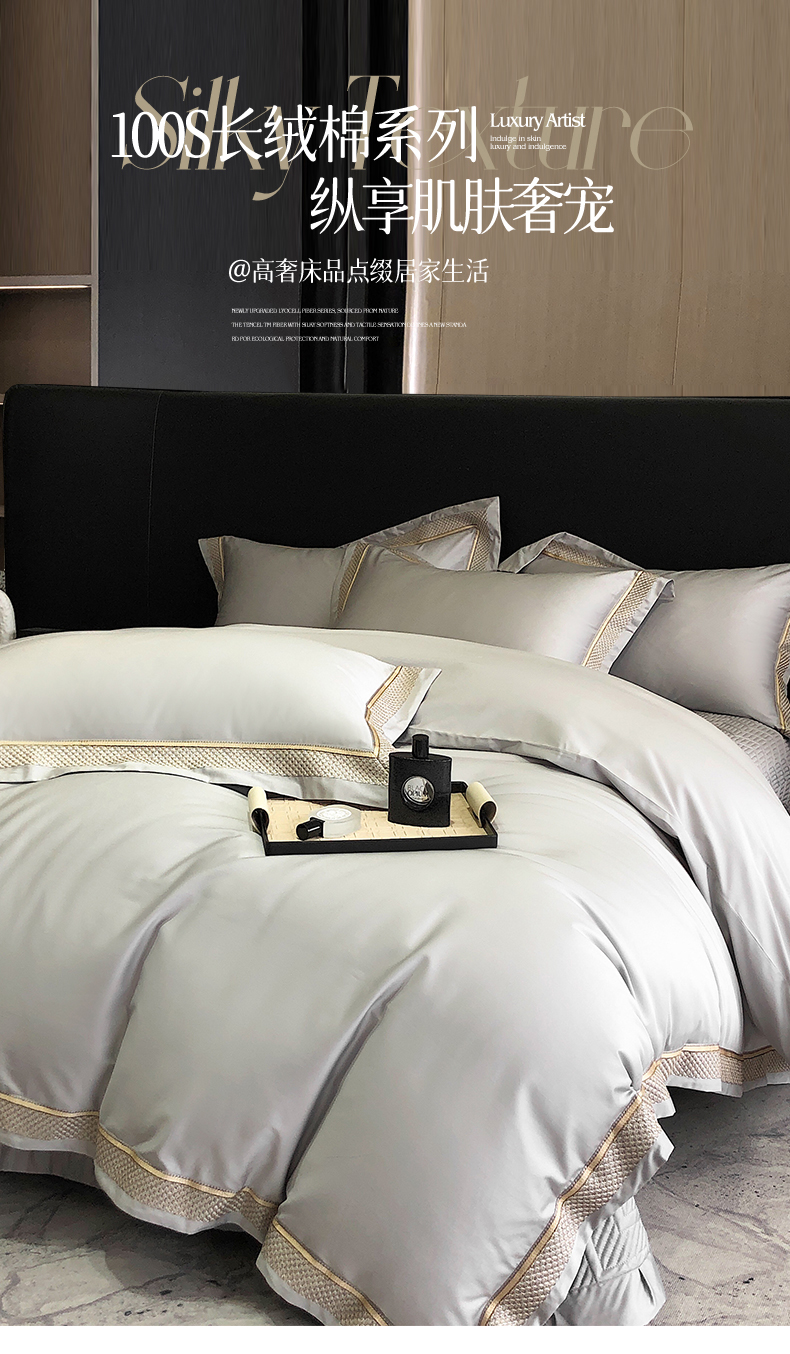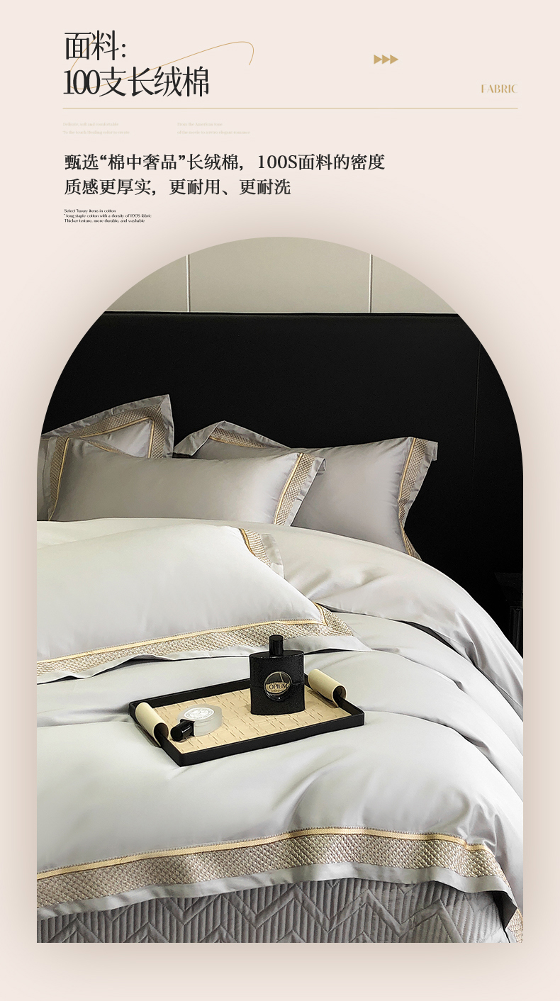 商品名称:保罗圣迪奥 2024新款100支长绒棉绣花床盖四件套 普罗旺斯-英伦灰