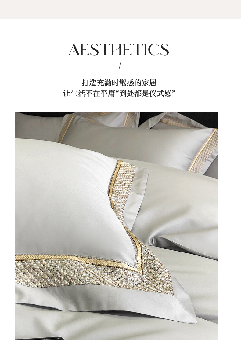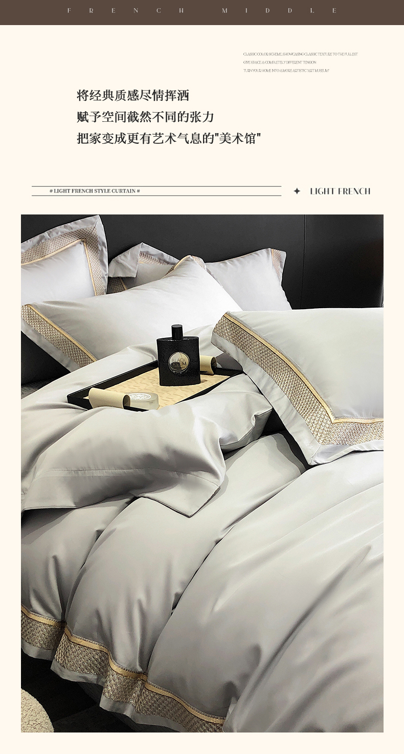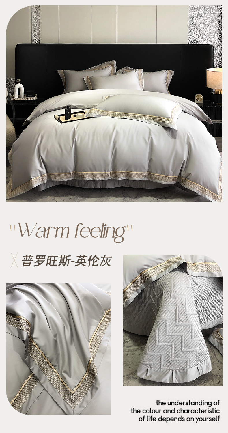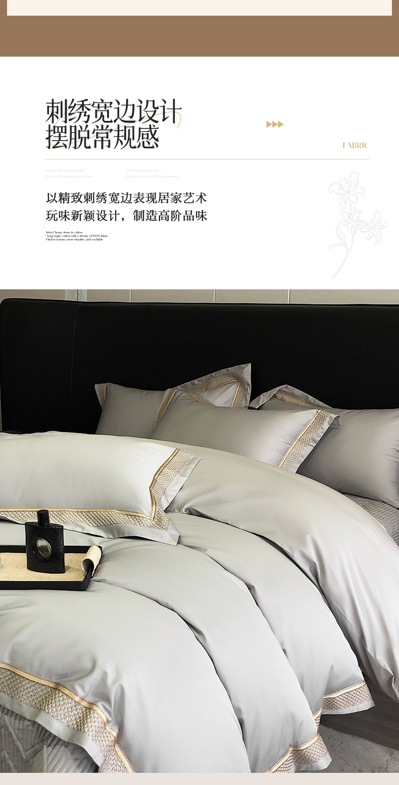 商品名称:保罗圣迪奥 2024新款100支长绒棉绣花床盖四件套 普罗旺斯-英伦灰