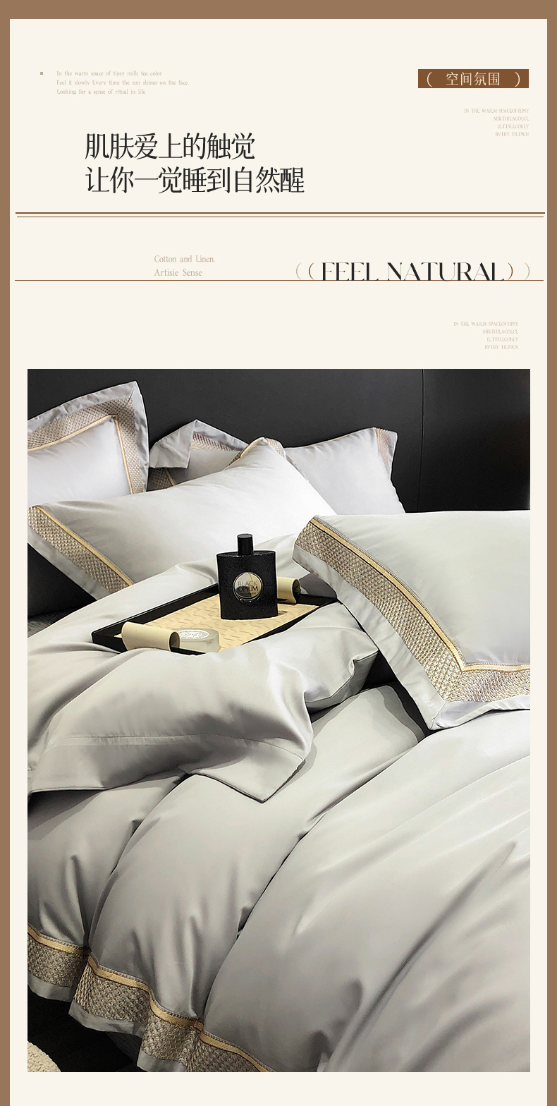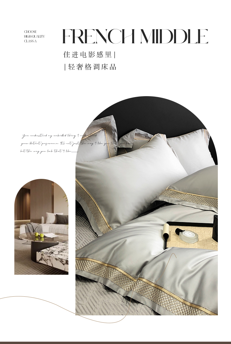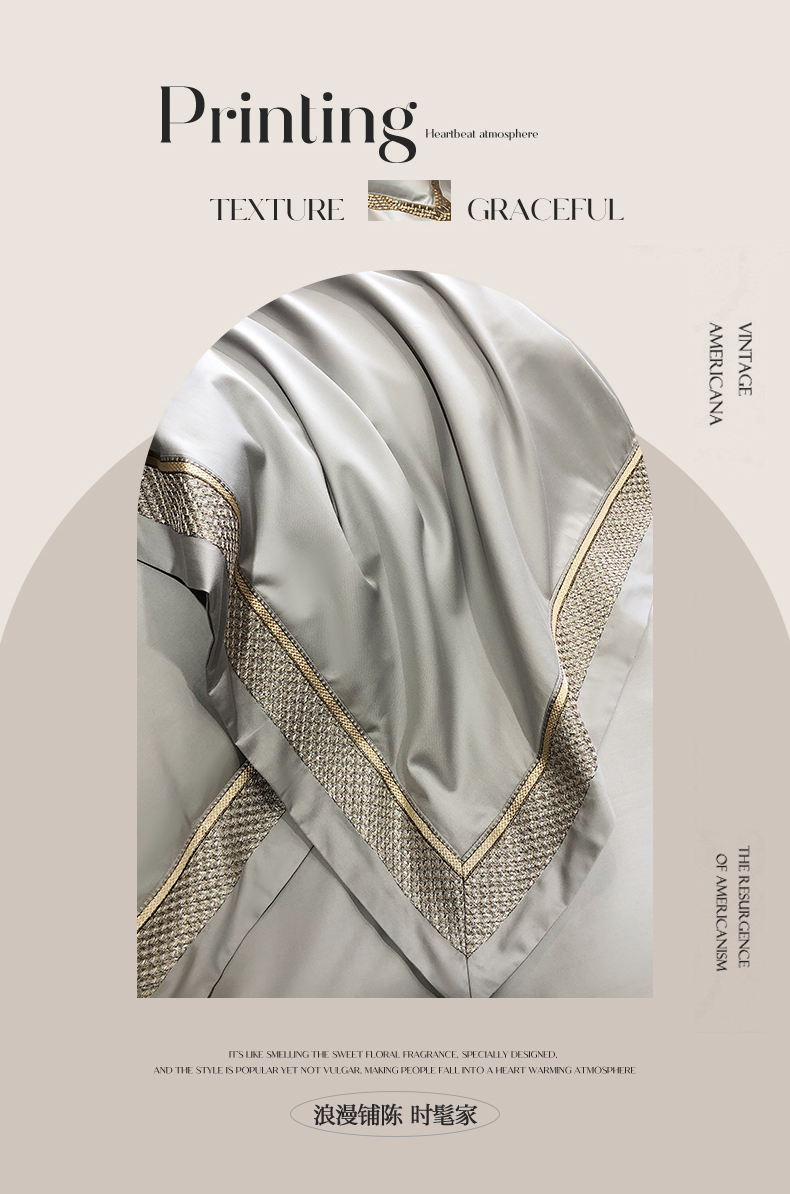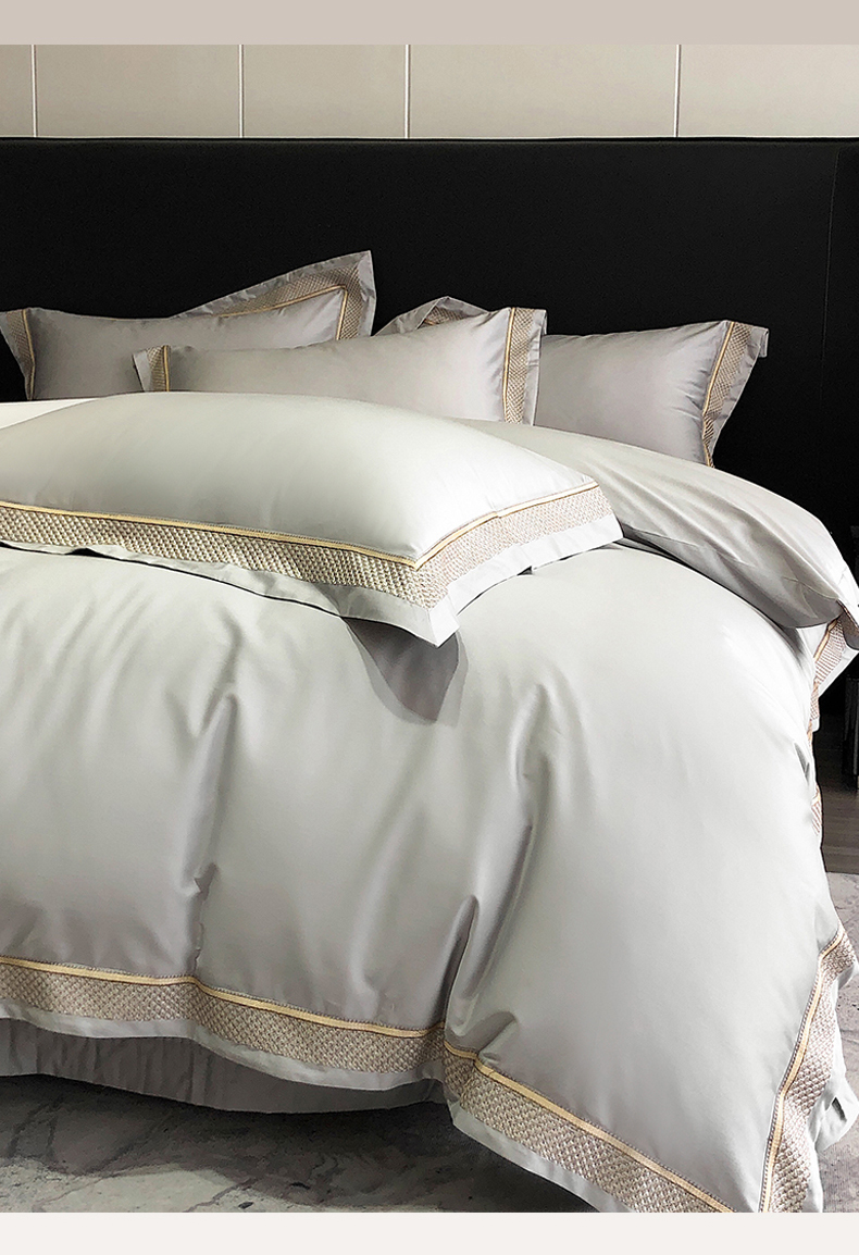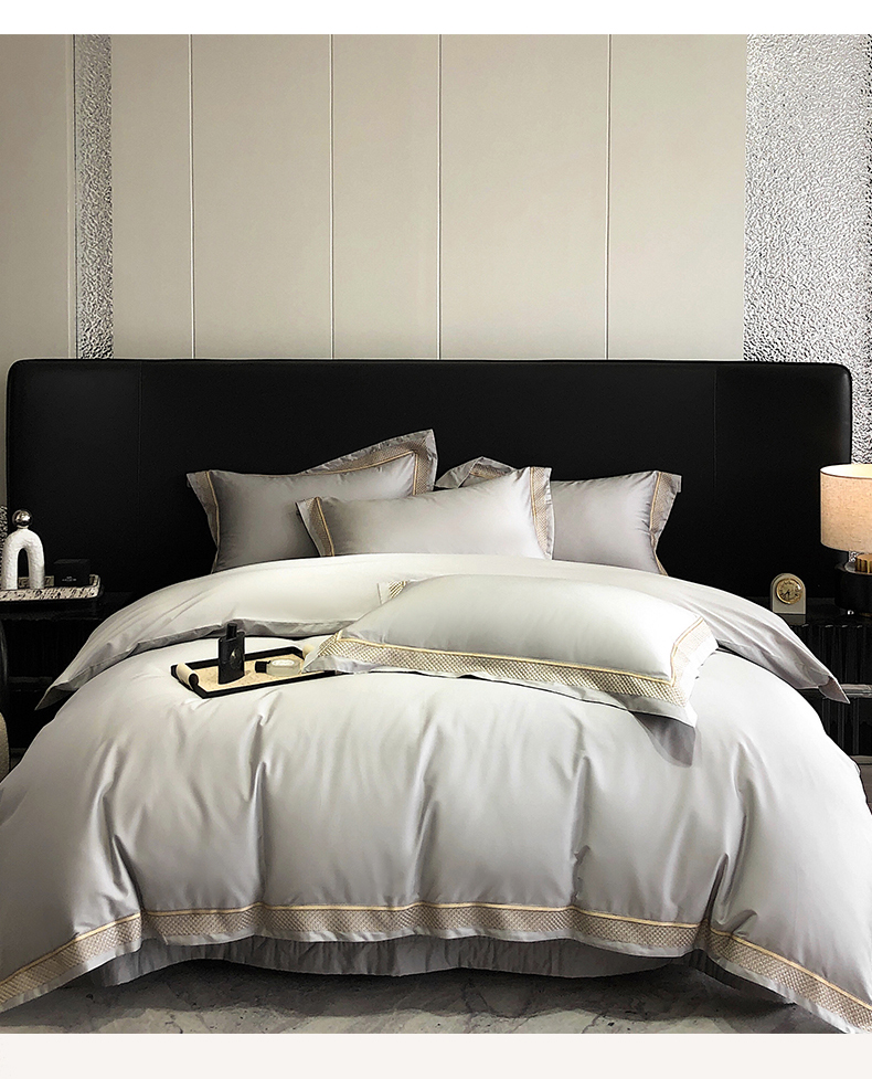 商品名称:保罗圣迪奥 2024新款100支长绒棉绣花床盖四件套 普罗旺斯-英伦灰