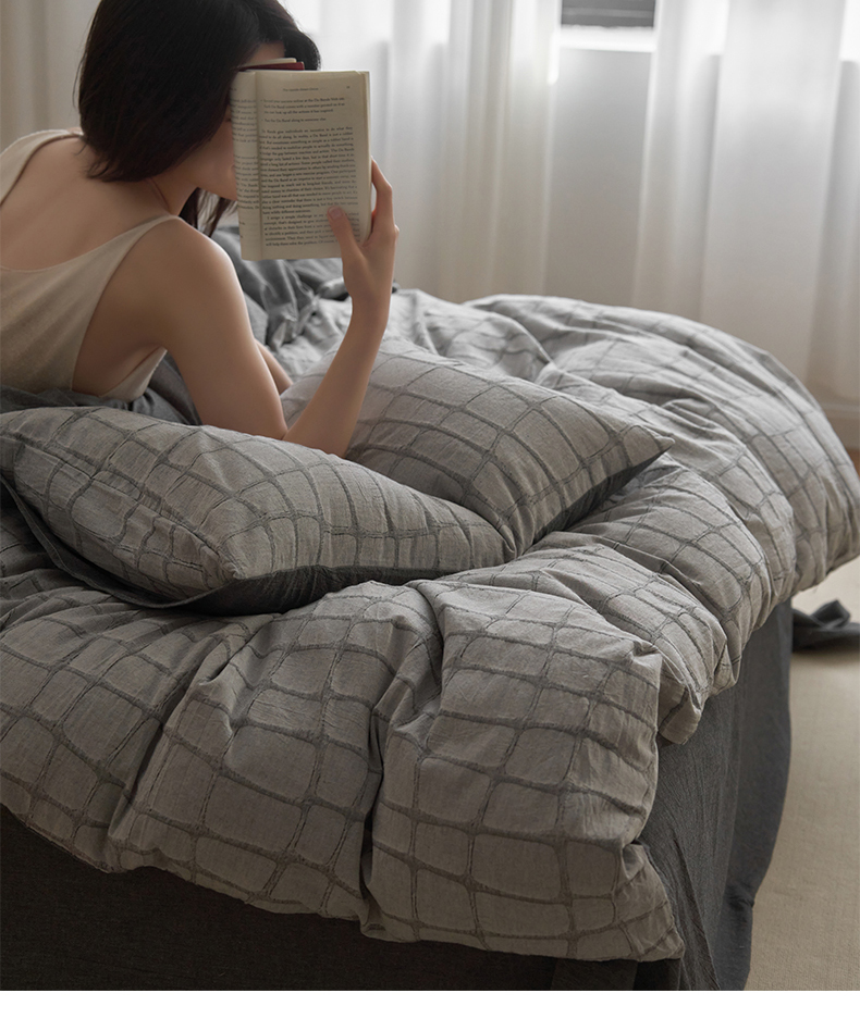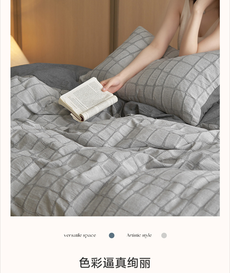 (总)安莱生活 2025春夏新款空气层色织提花四件套南阳假日系列,南阳假日-灰咖,南阳假日-卡其,南阳假日-银灰