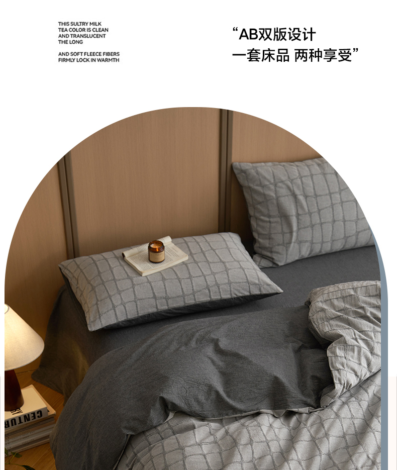 (总)安莱生活 2025新品天丝棉磨毛四件套-温煦系列,温煦-灰,温煦-紫