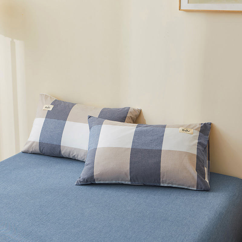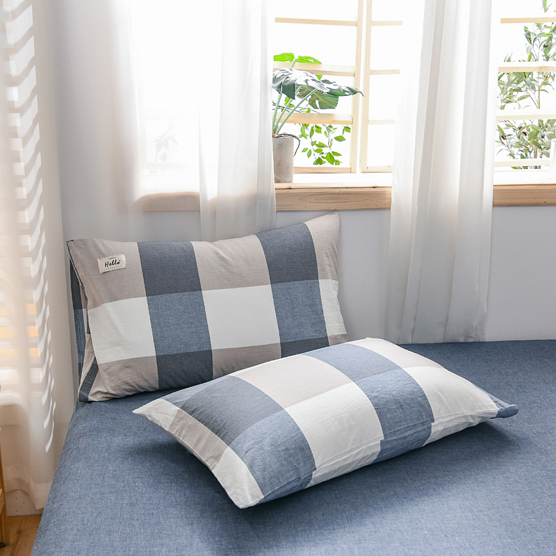 恋人优选 2024新款纯棉枕套贴标款 蓝大格 贴标