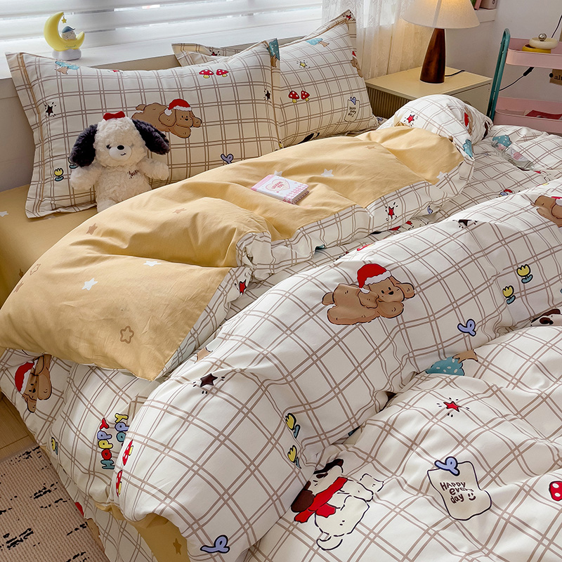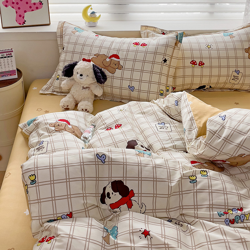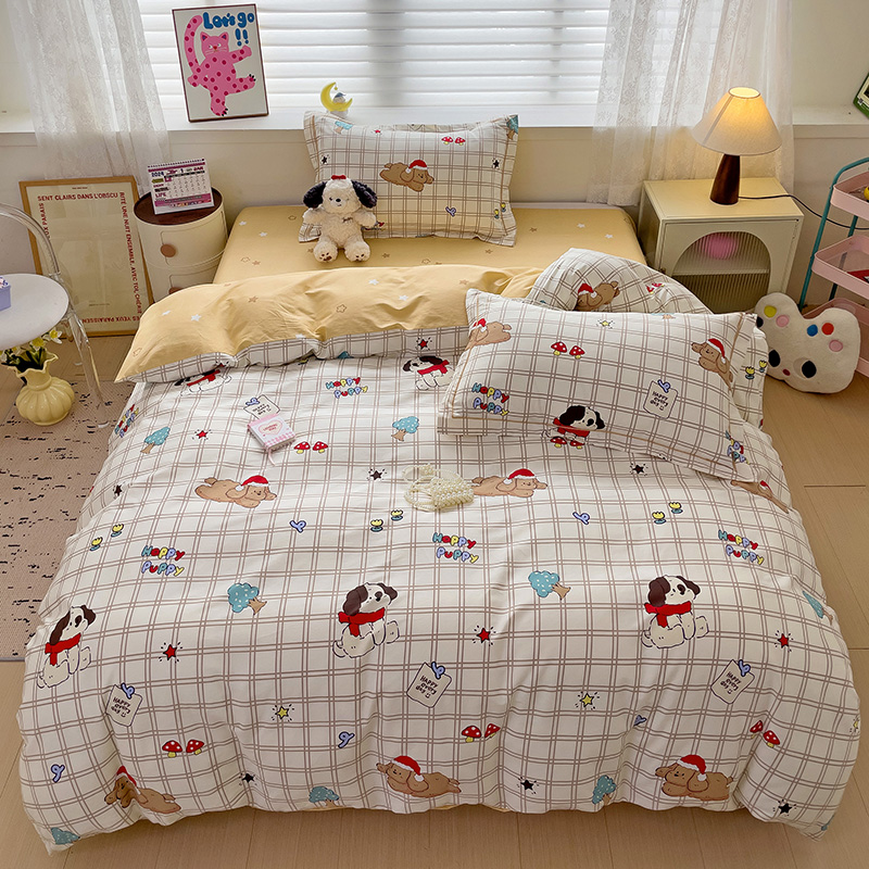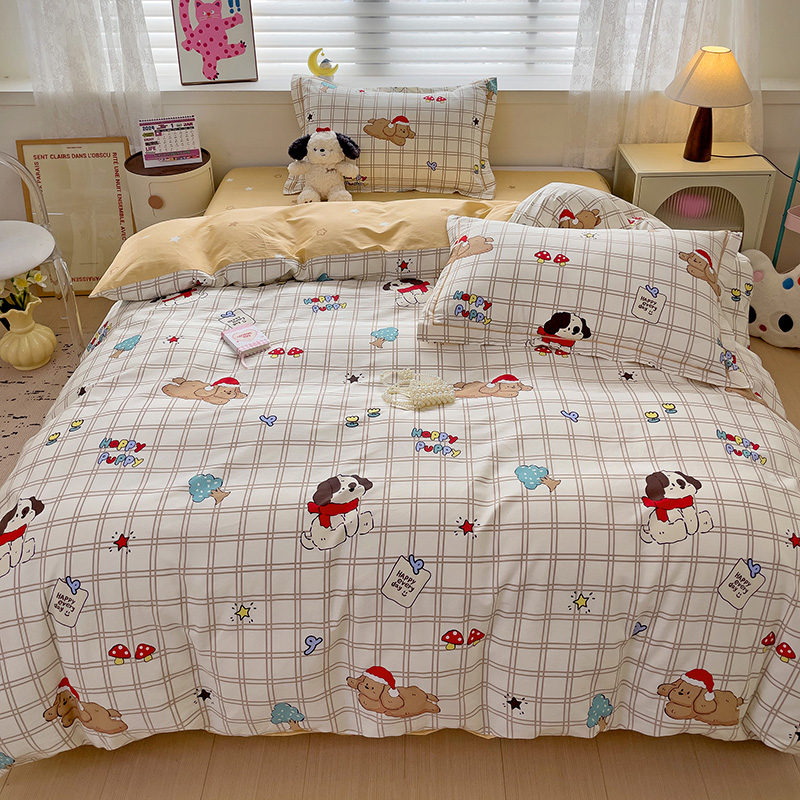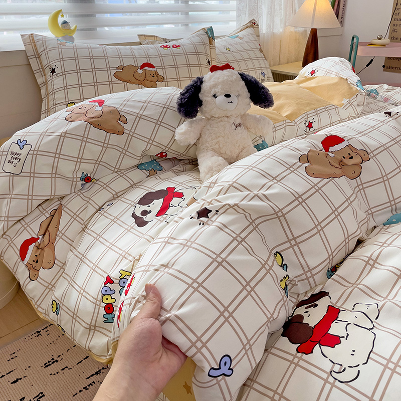 乐童 2024新款直播爆款13070纯棉印花吊边款一字绣四件套-第七波 萌趣家族