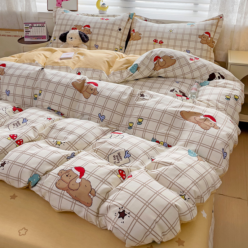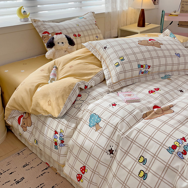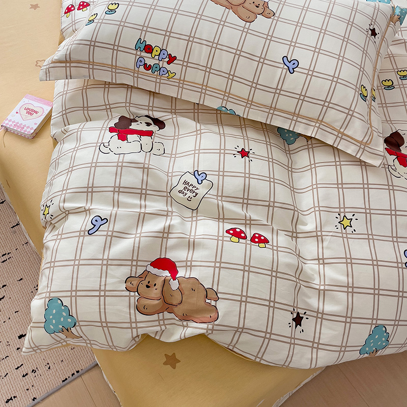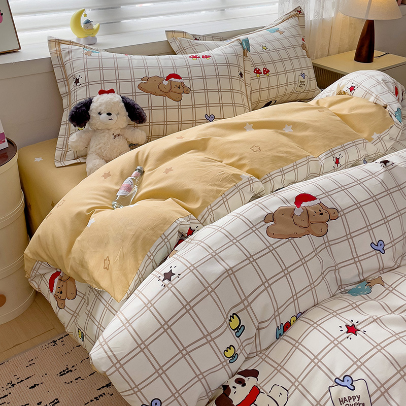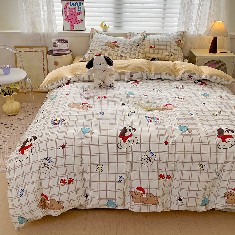 乐童 2024新款直播爆款13070纯棉印花吊边款一字绣四件套-第七波 萌趣家族