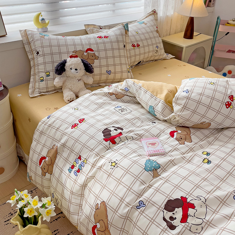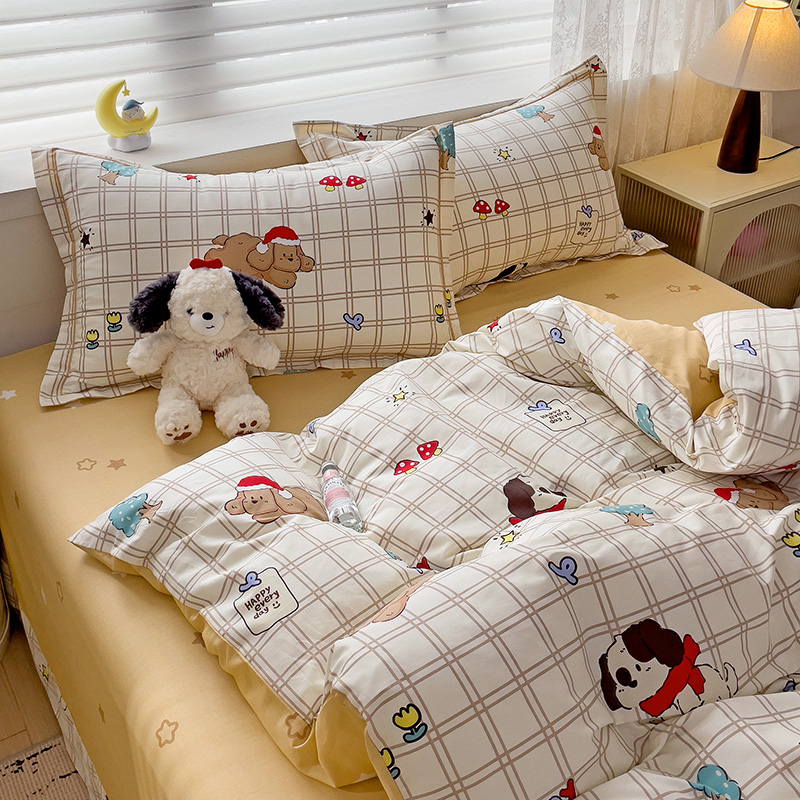 商品名称:乐童 2024新款直播爆款13070纯棉印花吊边款一字绣四件套-第七波 萌趣家族
