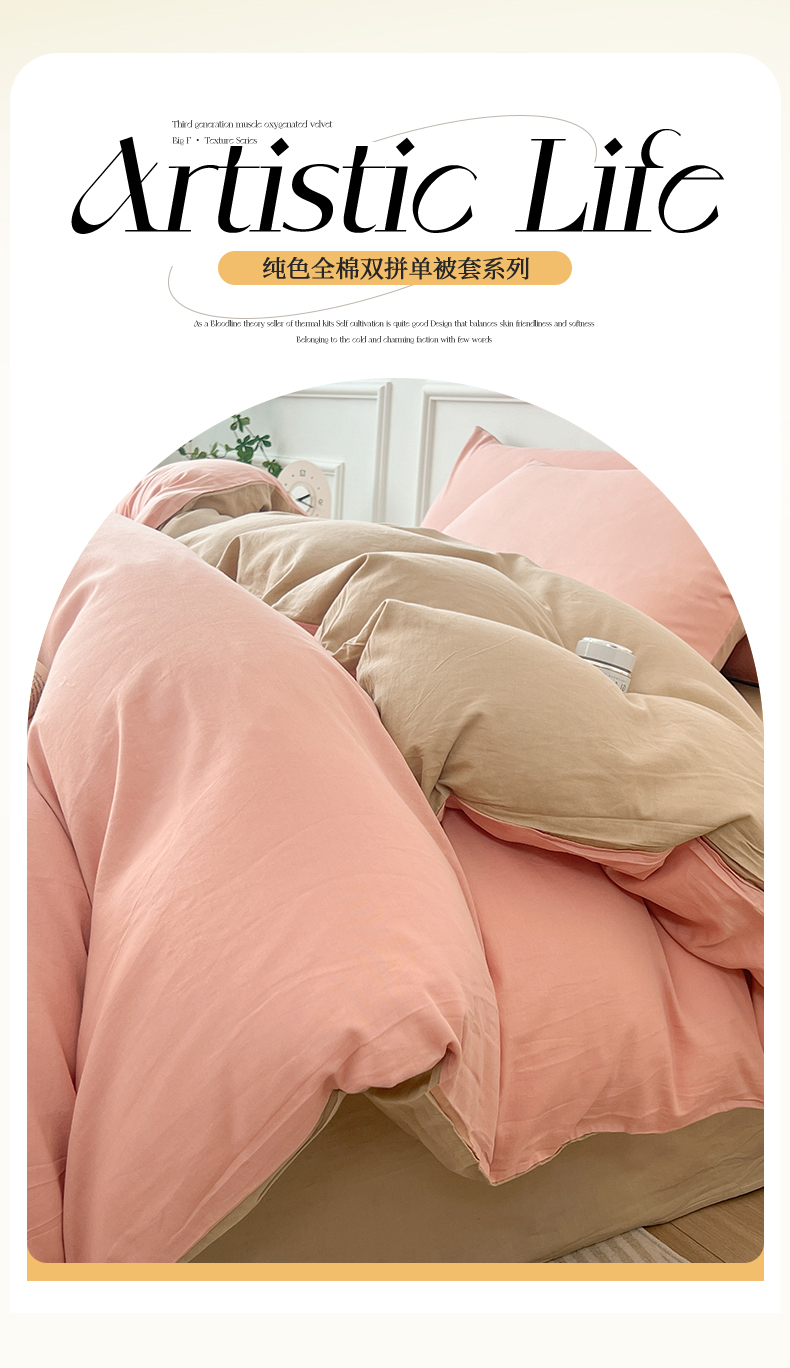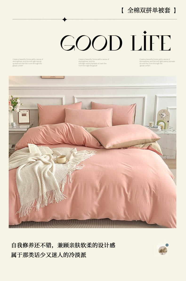 多品家纺 2024新款日式无印风纯色双拼全棉单被套 浅羽