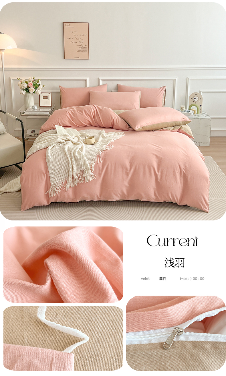 商品名称:多品家纺 2024新款日式无印风纯色双拼全棉单被套 浅羽