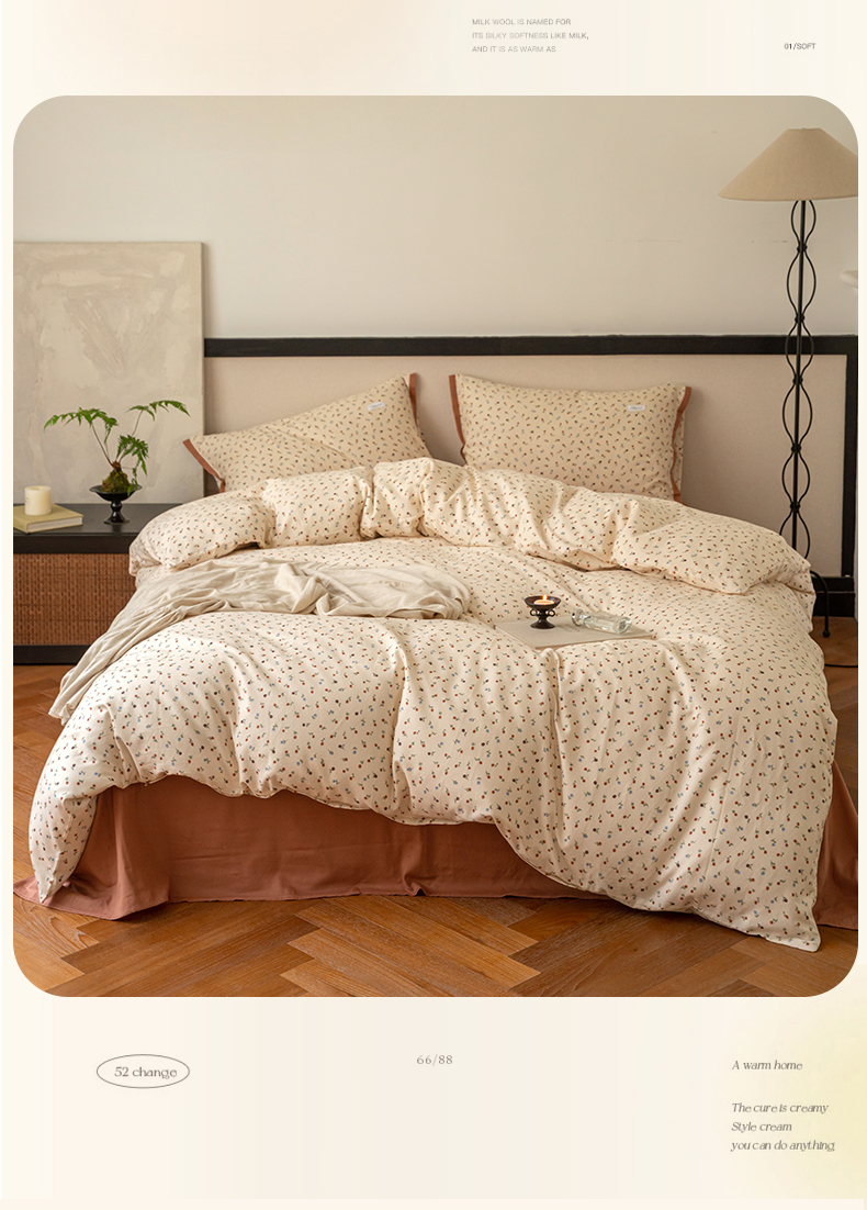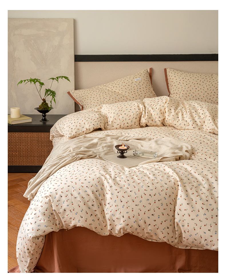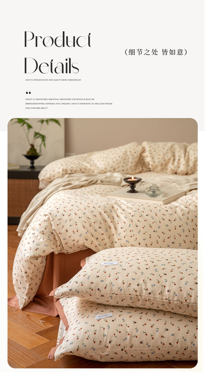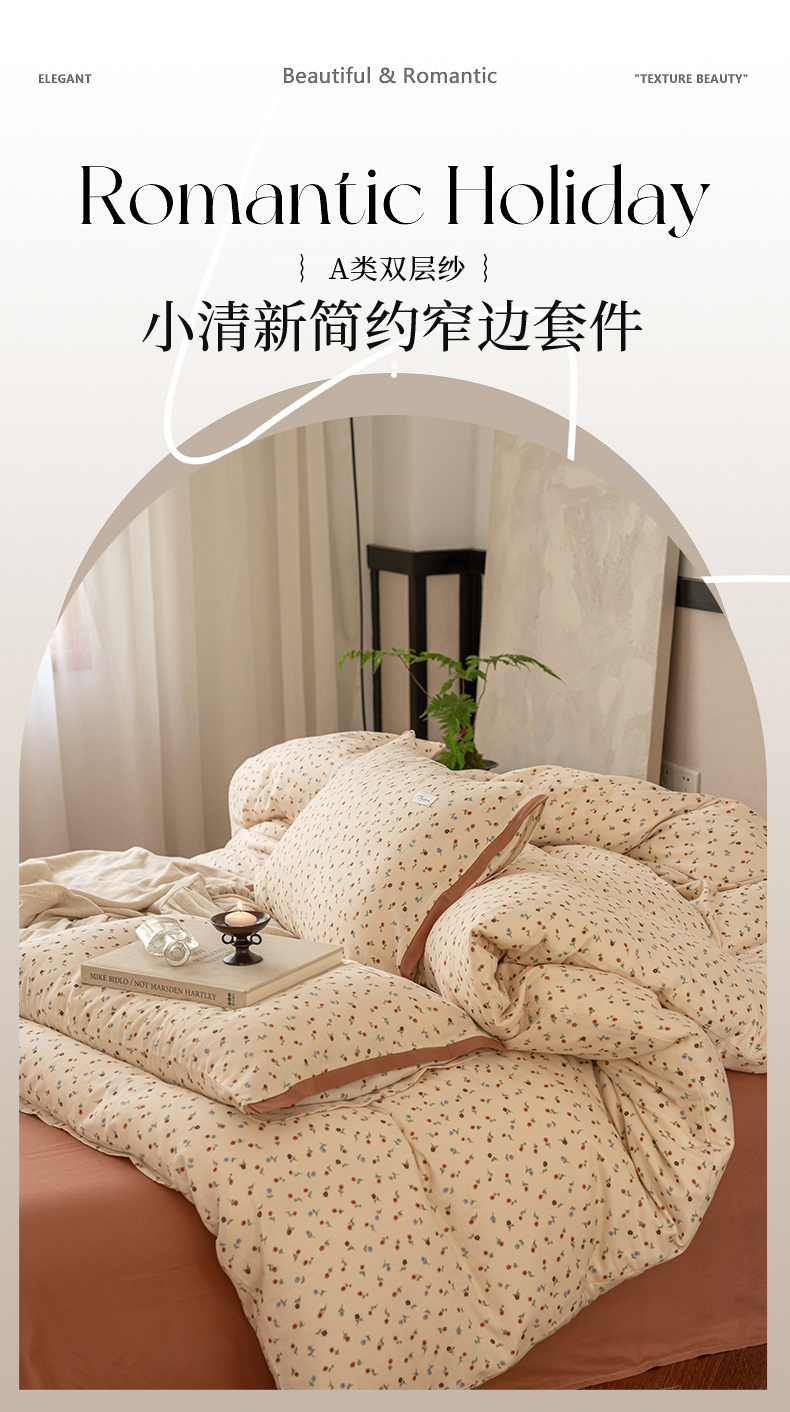 商品名称:时光里 2024新款A类全棉双层纱四件套 淡雅