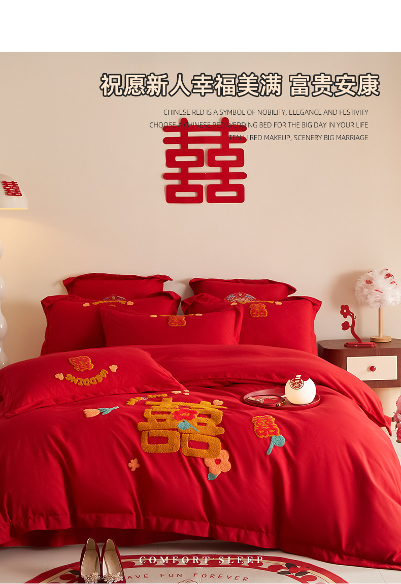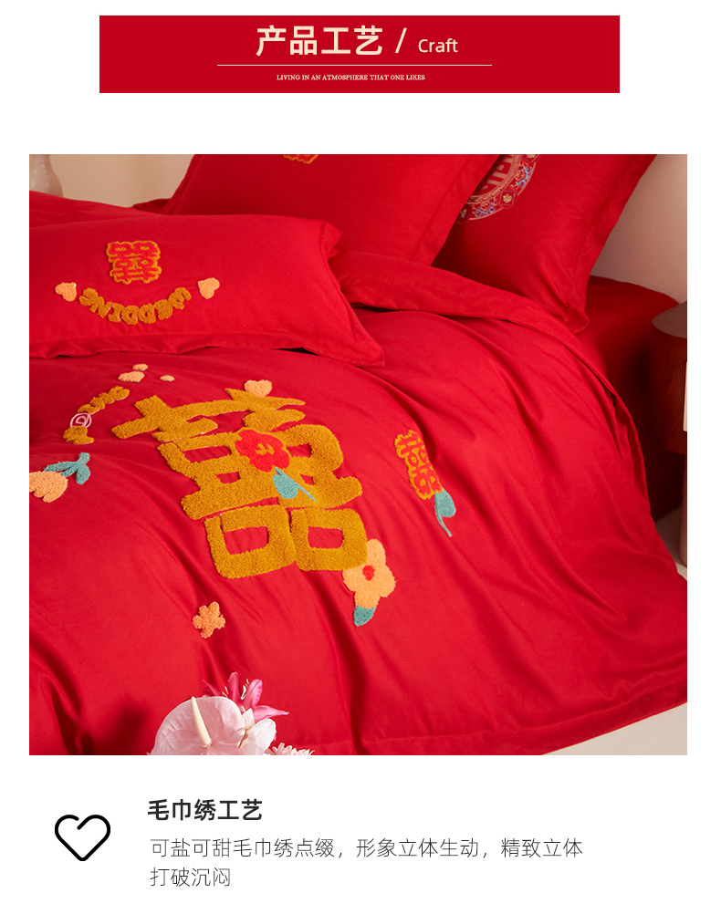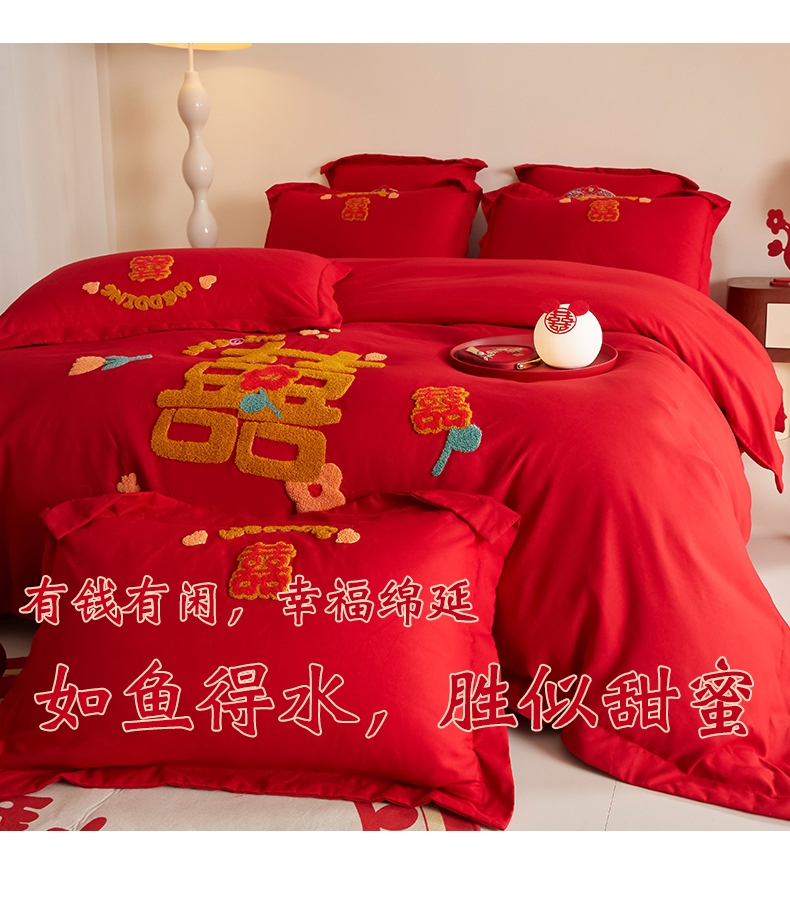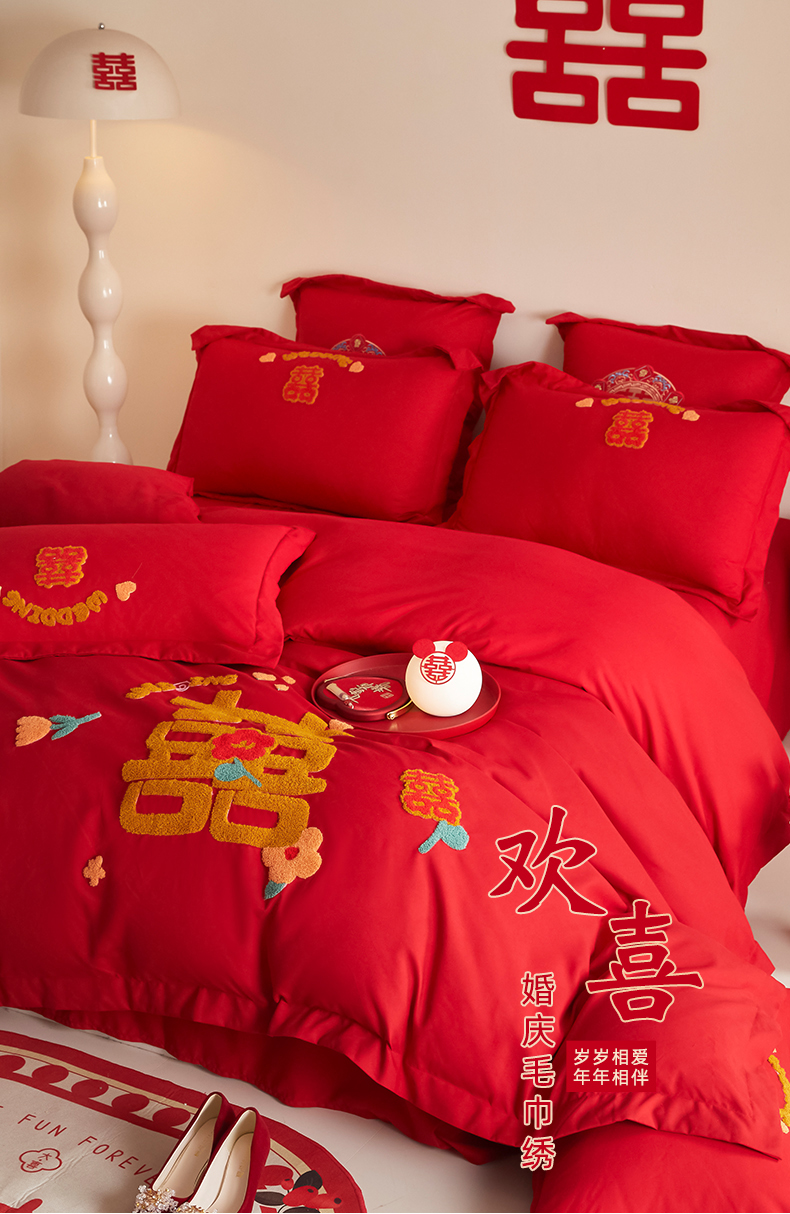 当前位置: 91家纺网 > 商品网购 > 床品套件 > 四件套 > 普通磨毛四件套 > 玉雅 2025新款磨毛时尚毛巾绣婚庆四件套 婚庆毛巾绣-囍多多