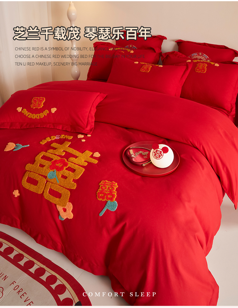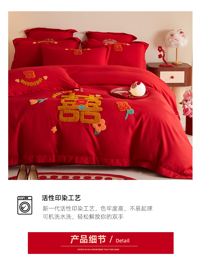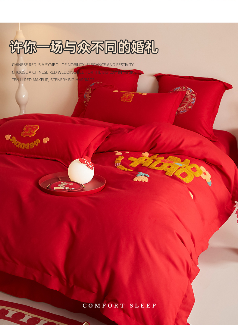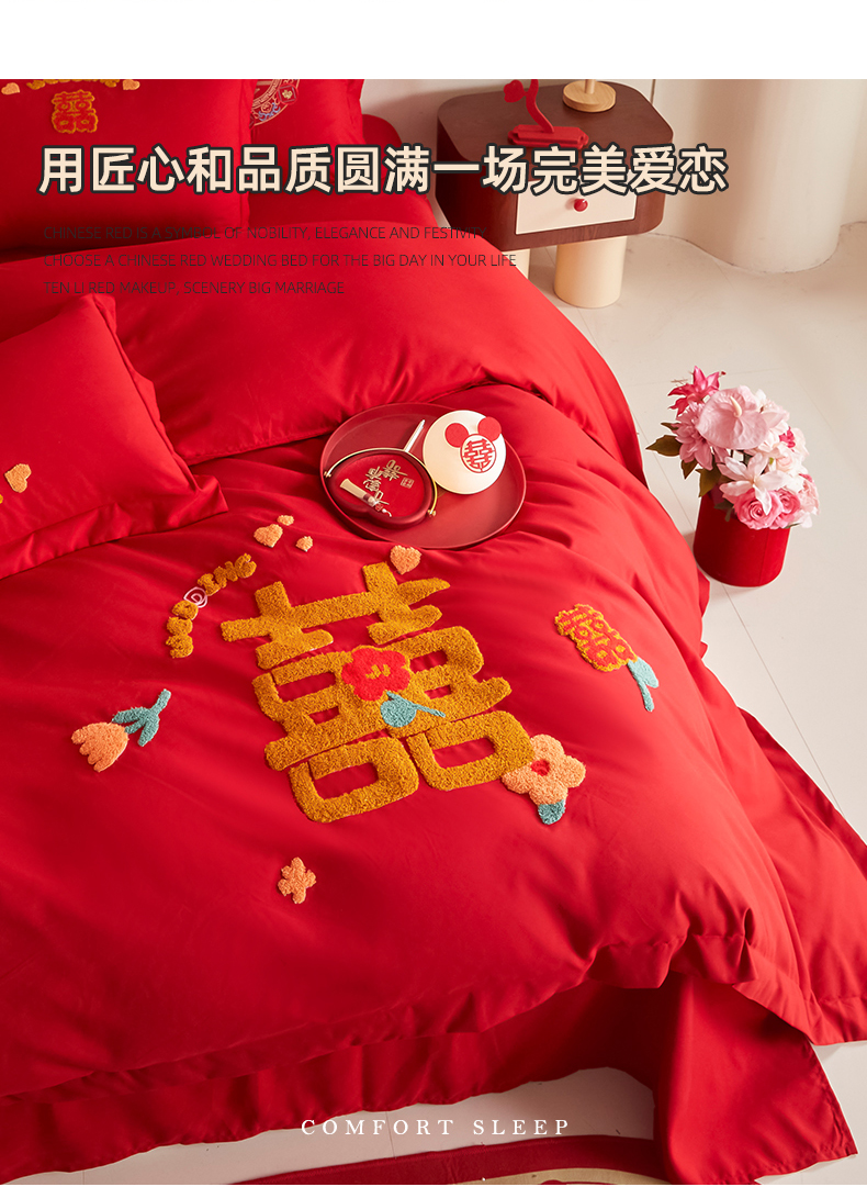 当前位置: 91家纺网 > 商品网购 > 床品套件 > 四件套 > 普通磨毛四件套 > 玉雅 2025新款磨毛时尚毛巾绣婚庆四件套 婚庆毛巾绣-囍多多