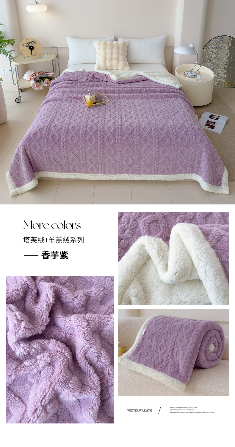 商品名称:(总)枋梢家纺跨境电商 2024菱形格塔芙绒羊羔绒毛毯加厚保暖毛毯