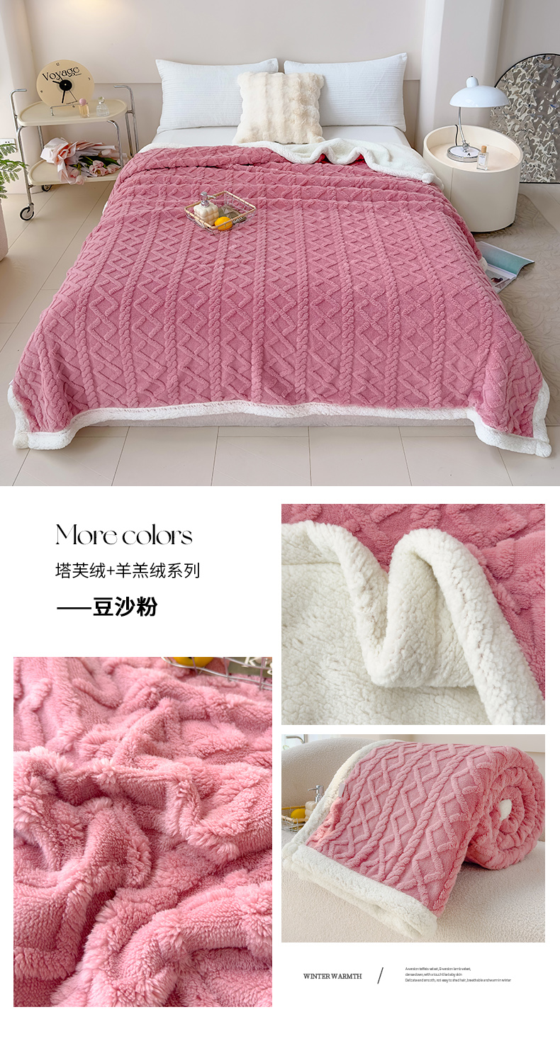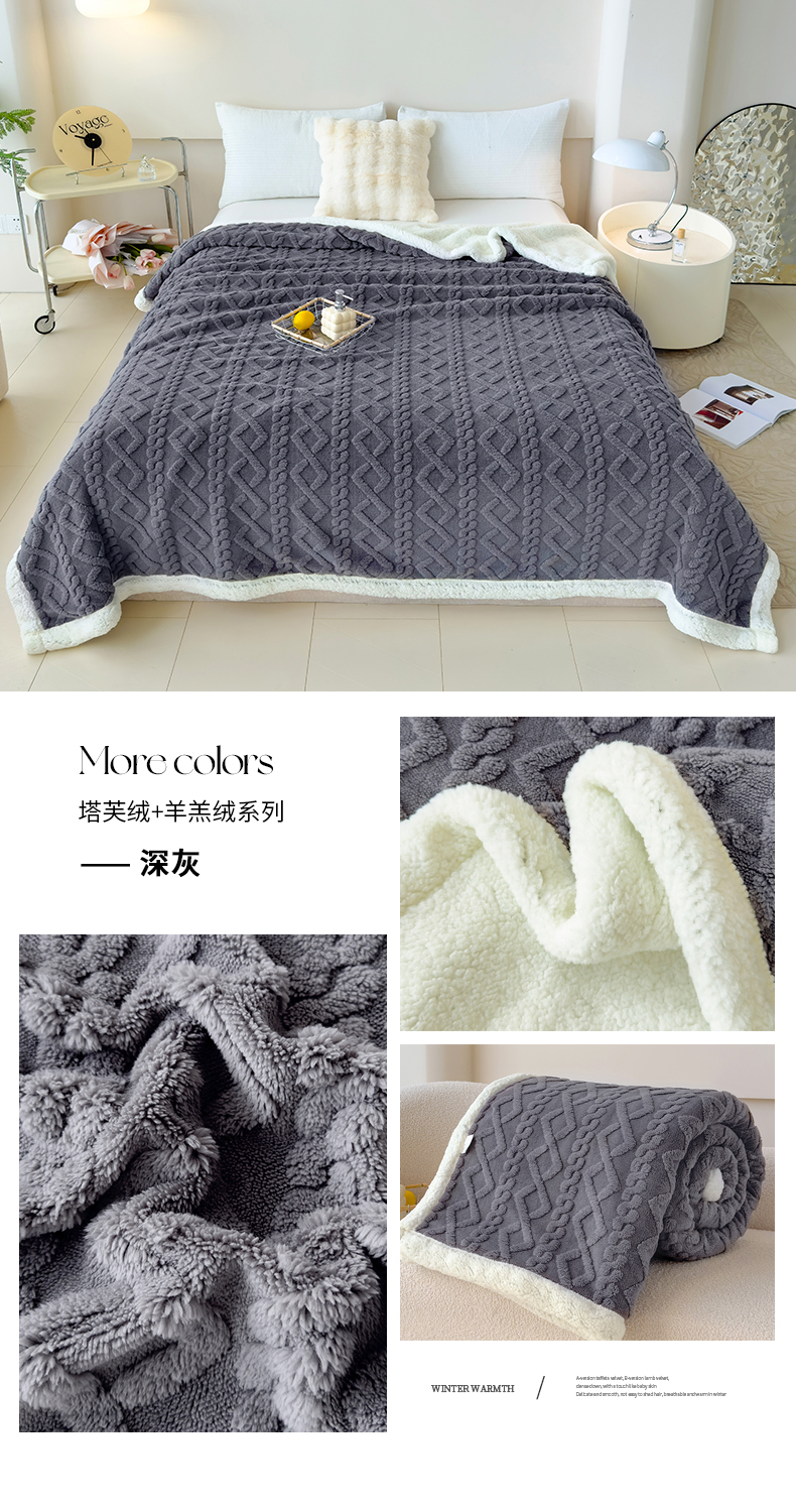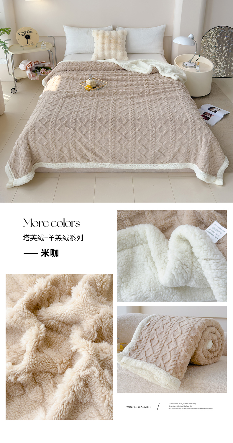 (总)枋梢家纺跨境电商 2024菱形格塔芙绒羊羔绒毛毯加厚保暖毛毯