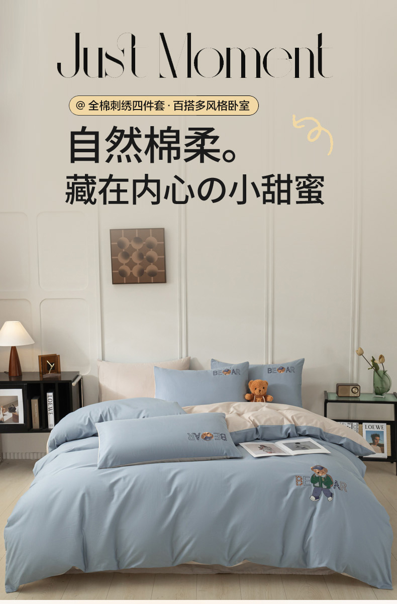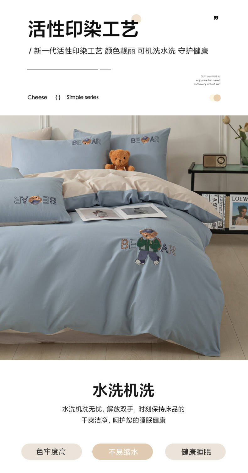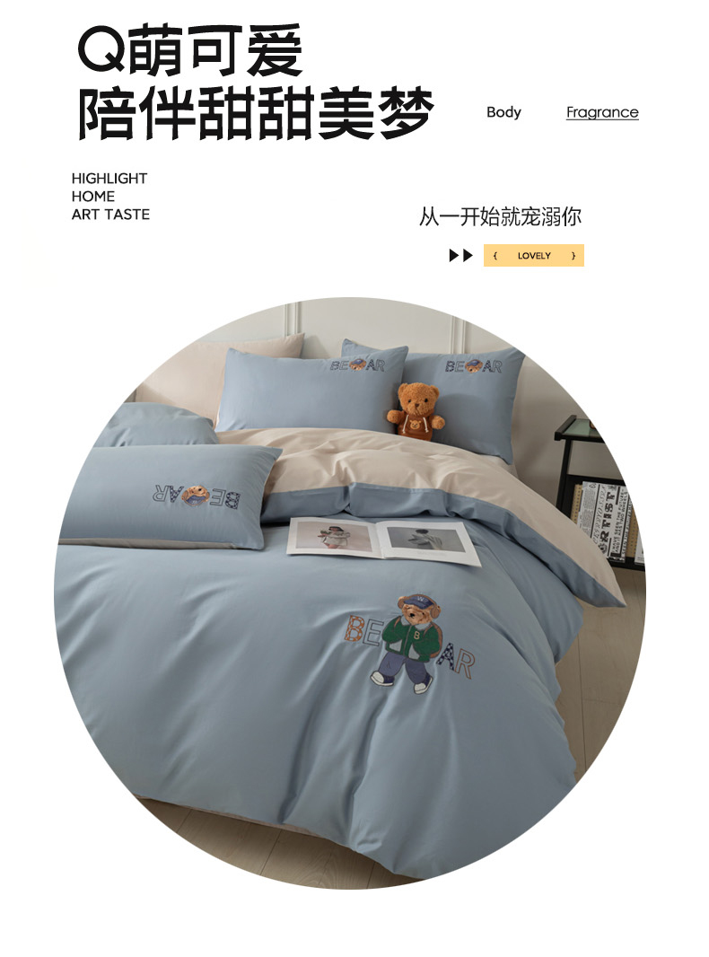 当前位置: 91家纺网 > 商品网购 > 床品套件 > 四件套 > 全棉活性四件套 > 万盛家纺 2025新款全棉喷气13372刺绣卡通四件套 cowboy熊-深蓝咖