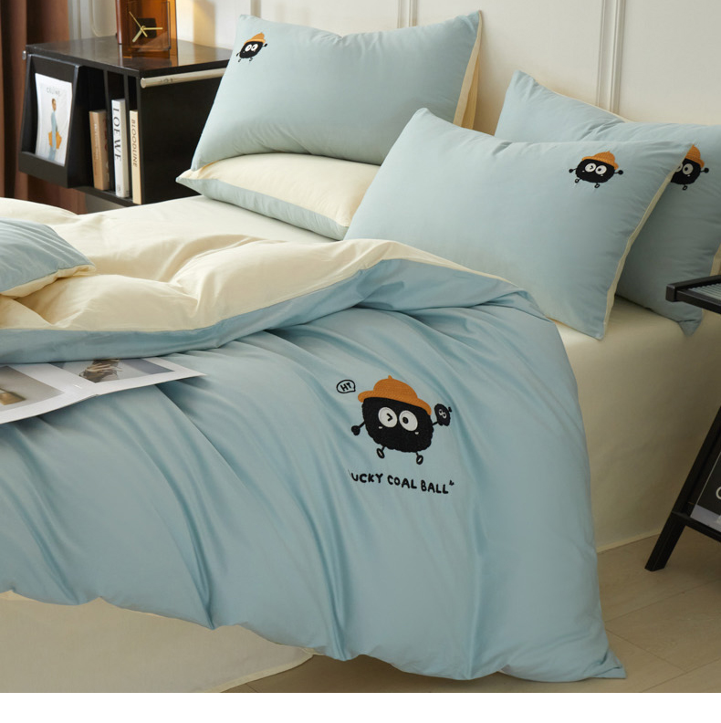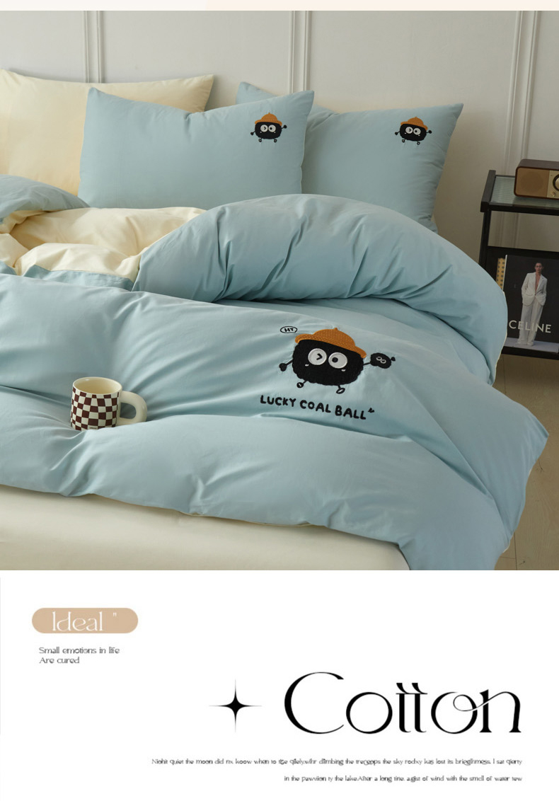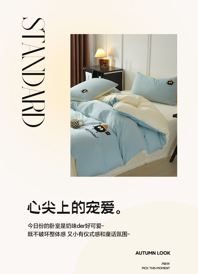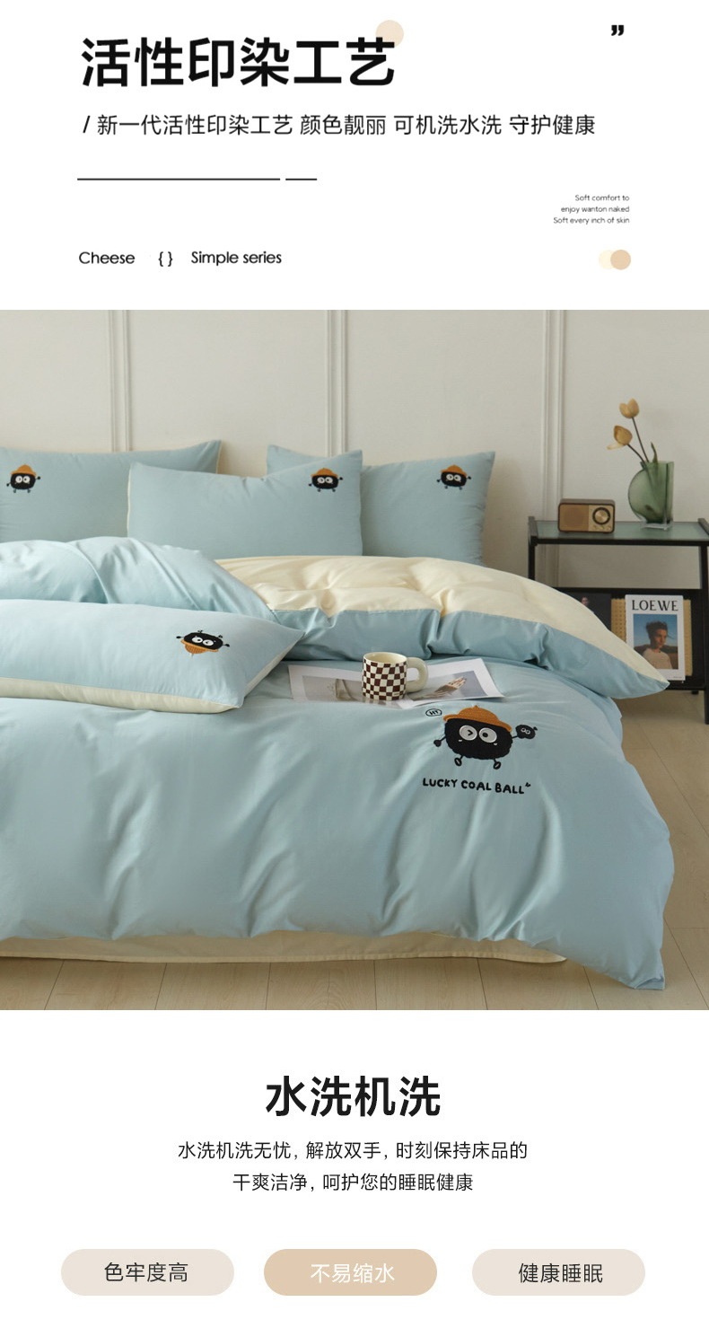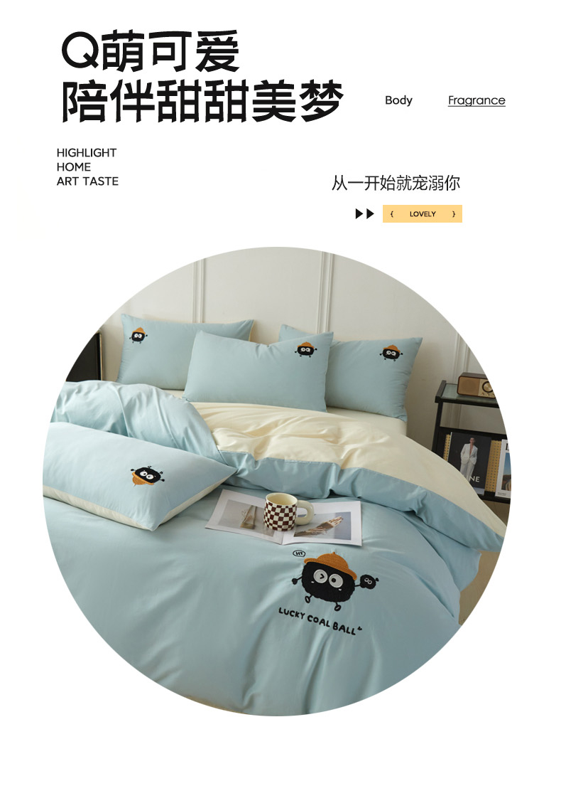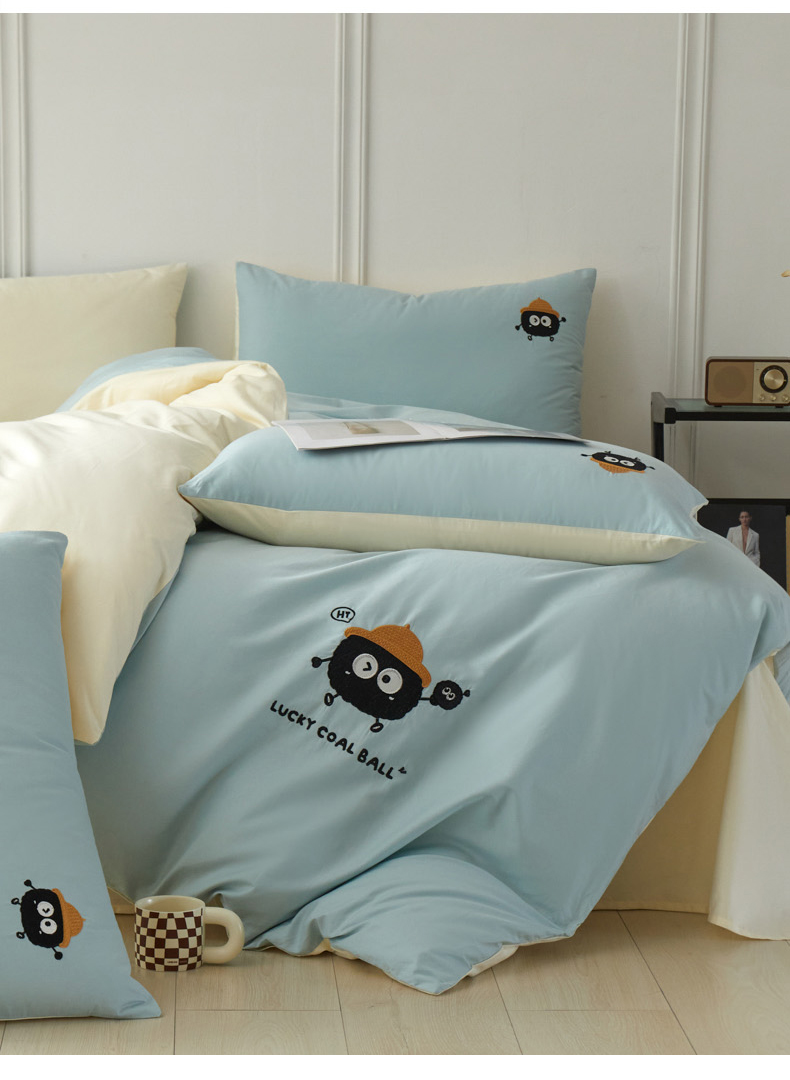 当前位置: 91家纺网 > 商品网购 > 床品套件 > 四件套 > 全棉活性四件套 > 万盛家纺 2025新款全棉喷气13372刺绣卡通四件套 lucky煤球-浅蓝卡其