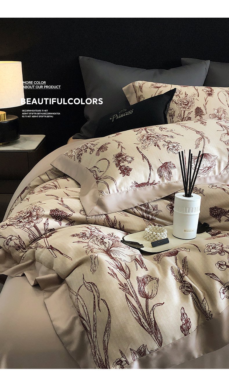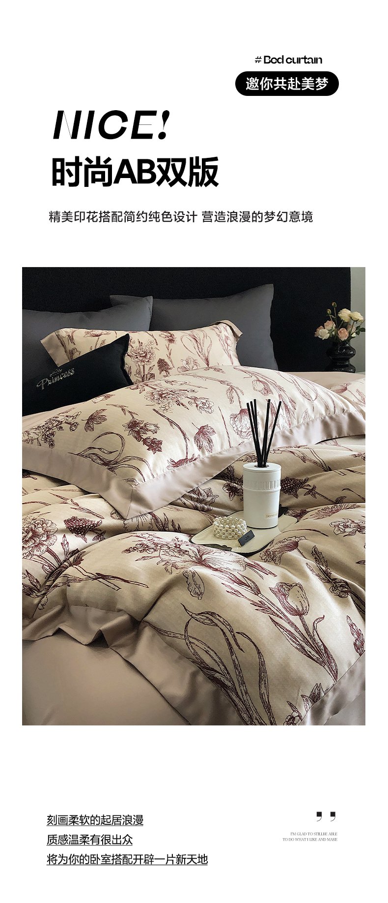 商品名称:2024新款60支兰精天丝数码印花四件套系列 希拉-红