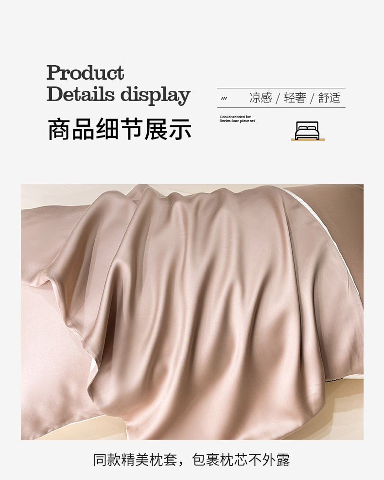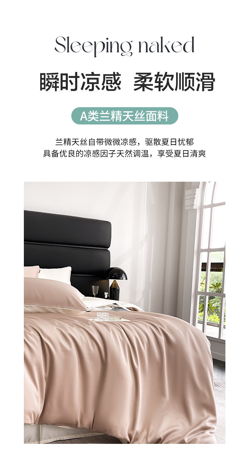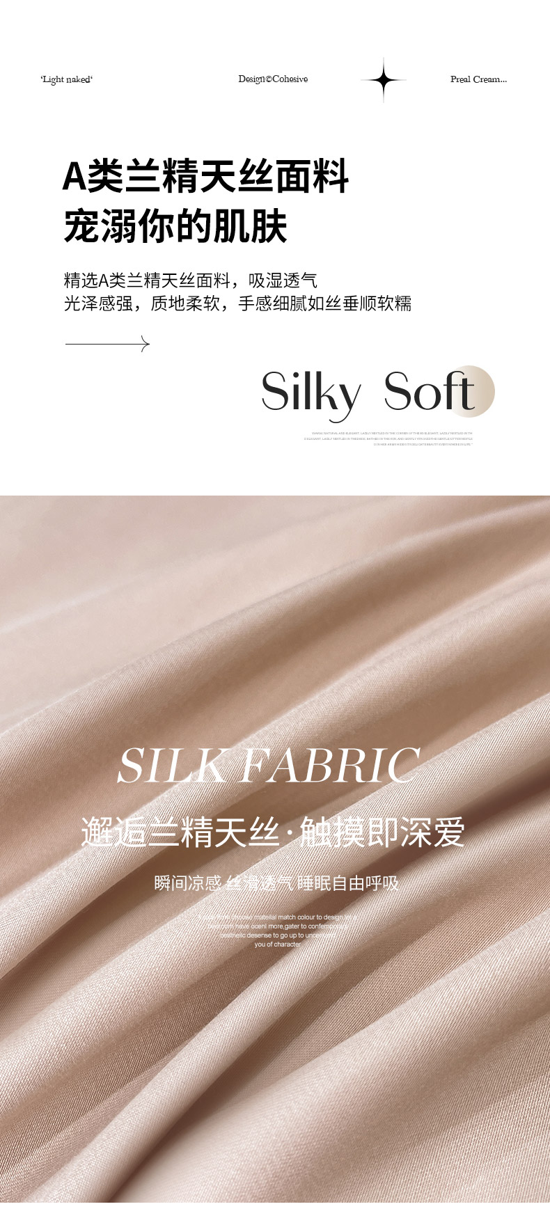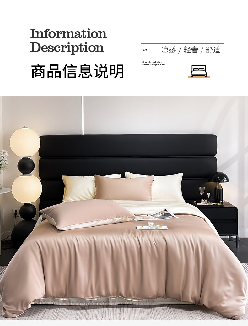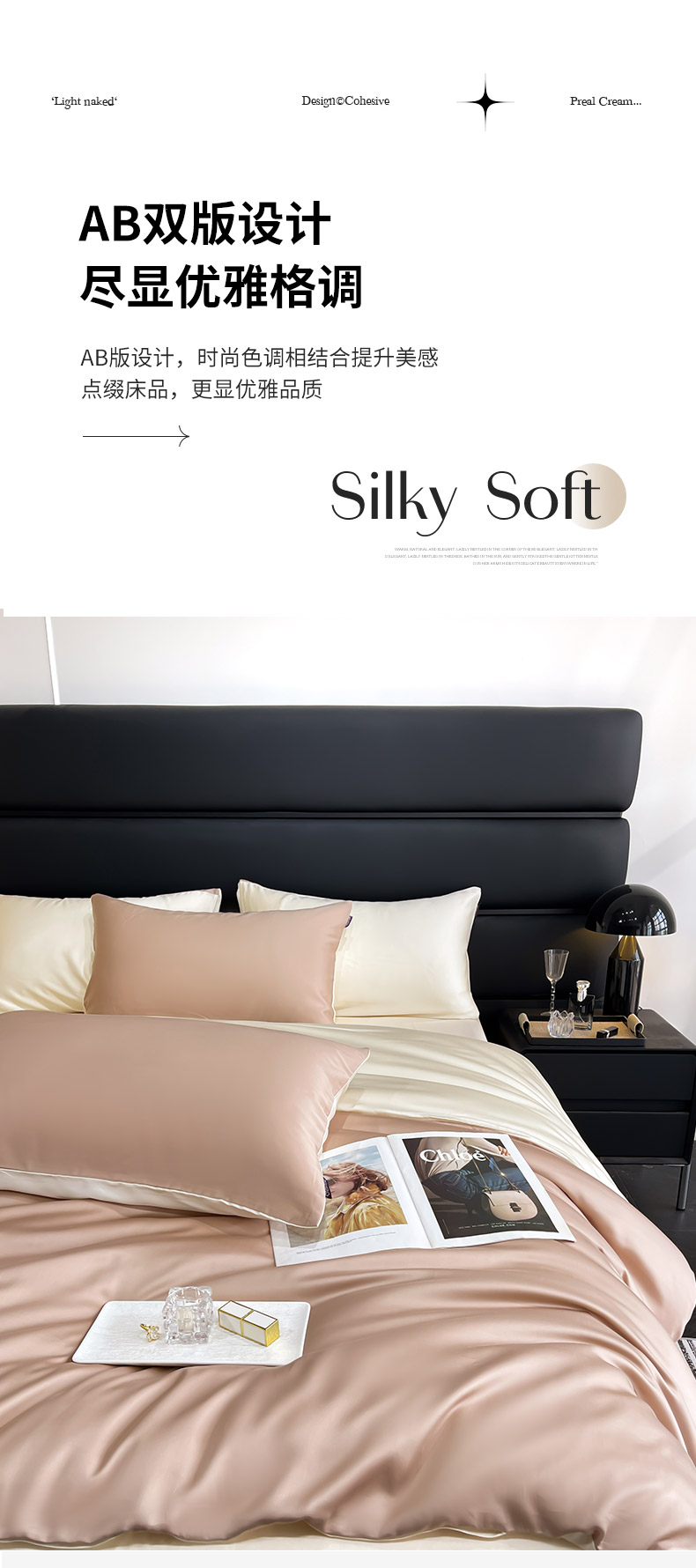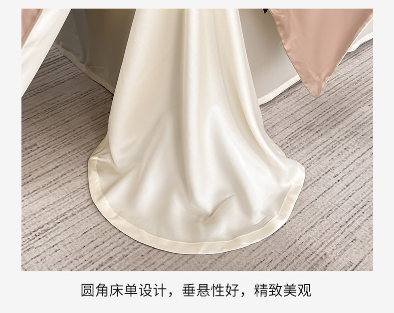 商品名称:【A类100支兰精天丝】夏季轻奢风真丝四件套拼色纯色简约凉感冰丝绸床上用品 美拉德+奶昔白