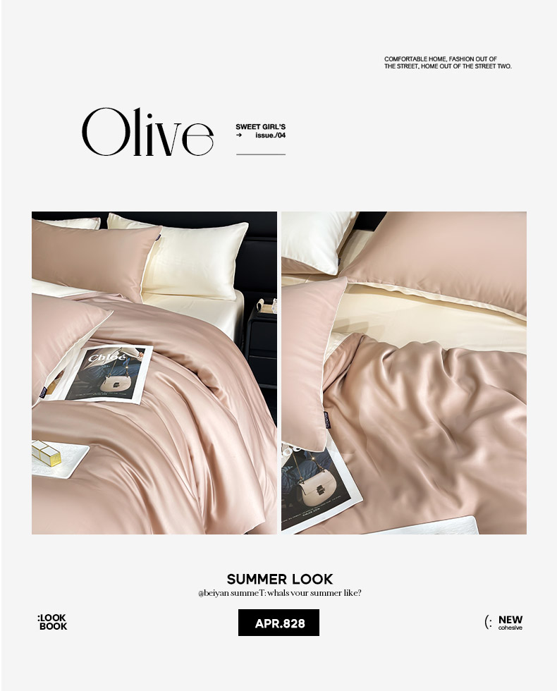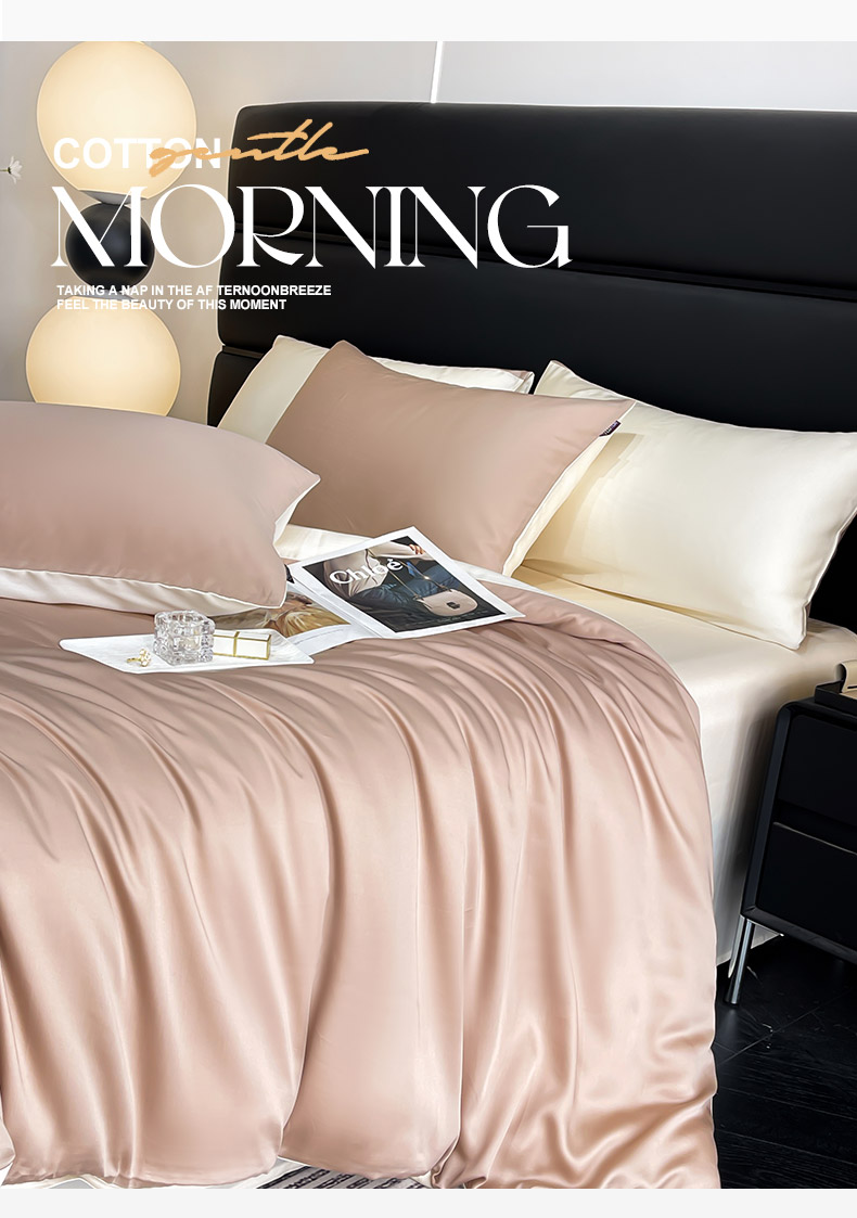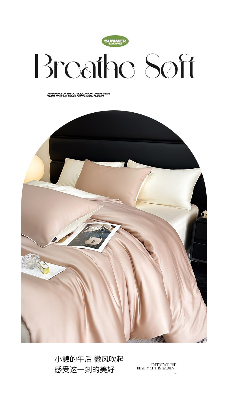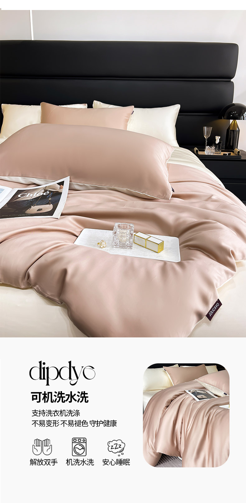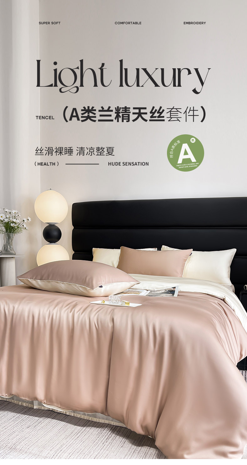 商品名称:【A类100支兰精天丝】夏季轻奢风真丝四件套拼色纯色简约凉感冰丝绸床上用品 美拉德+奶昔白
