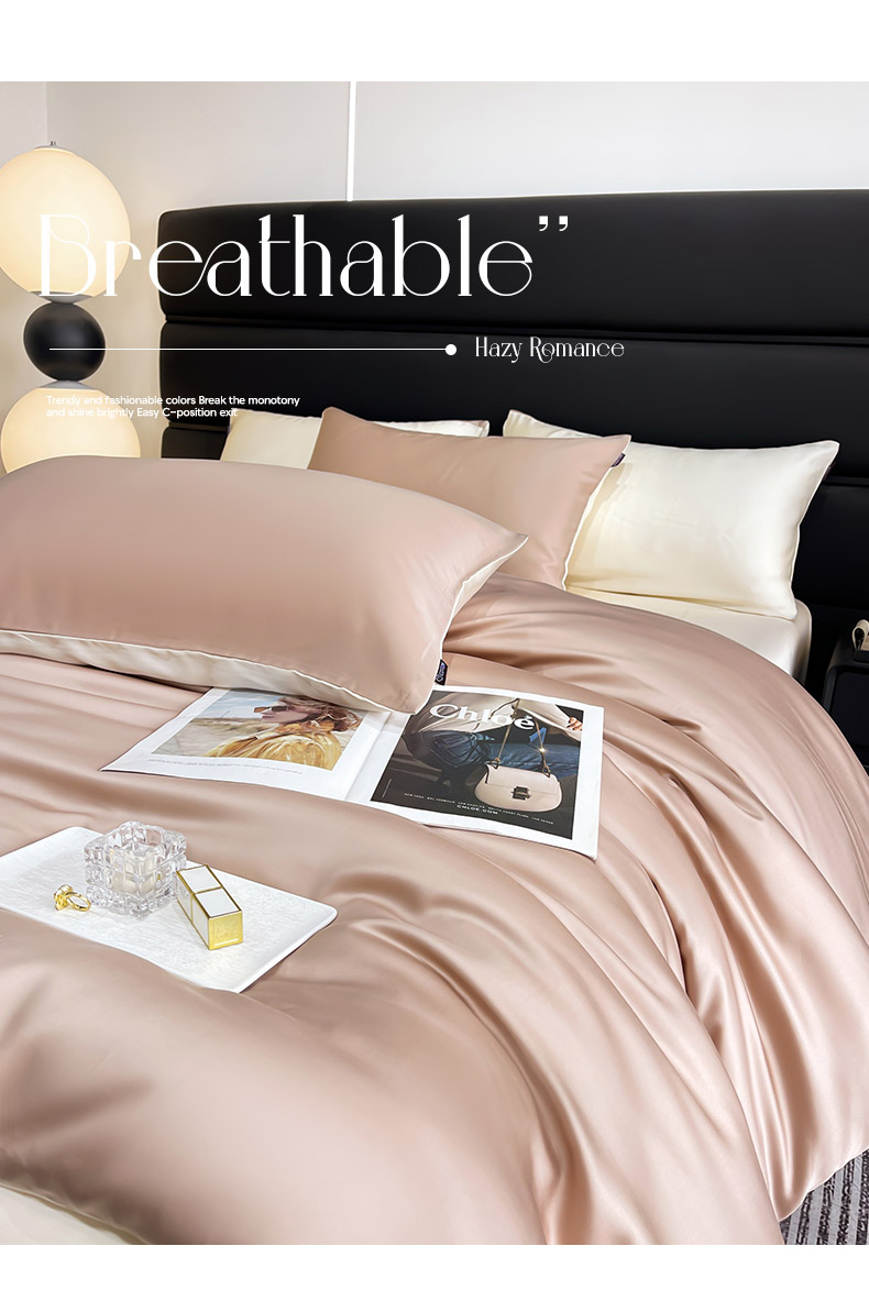 【A类100支兰精天丝】夏季轻奢风真丝四件套拼色纯色简约凉感冰丝绸床上用品 美拉德+奶昔白