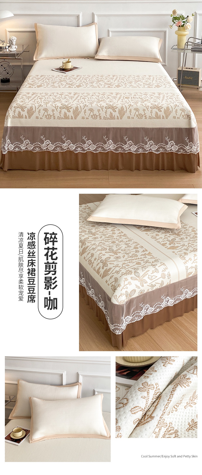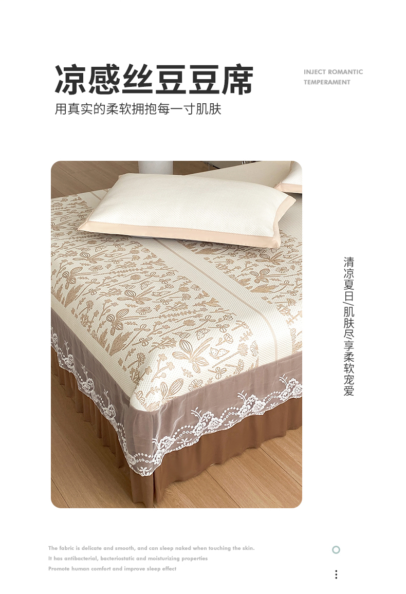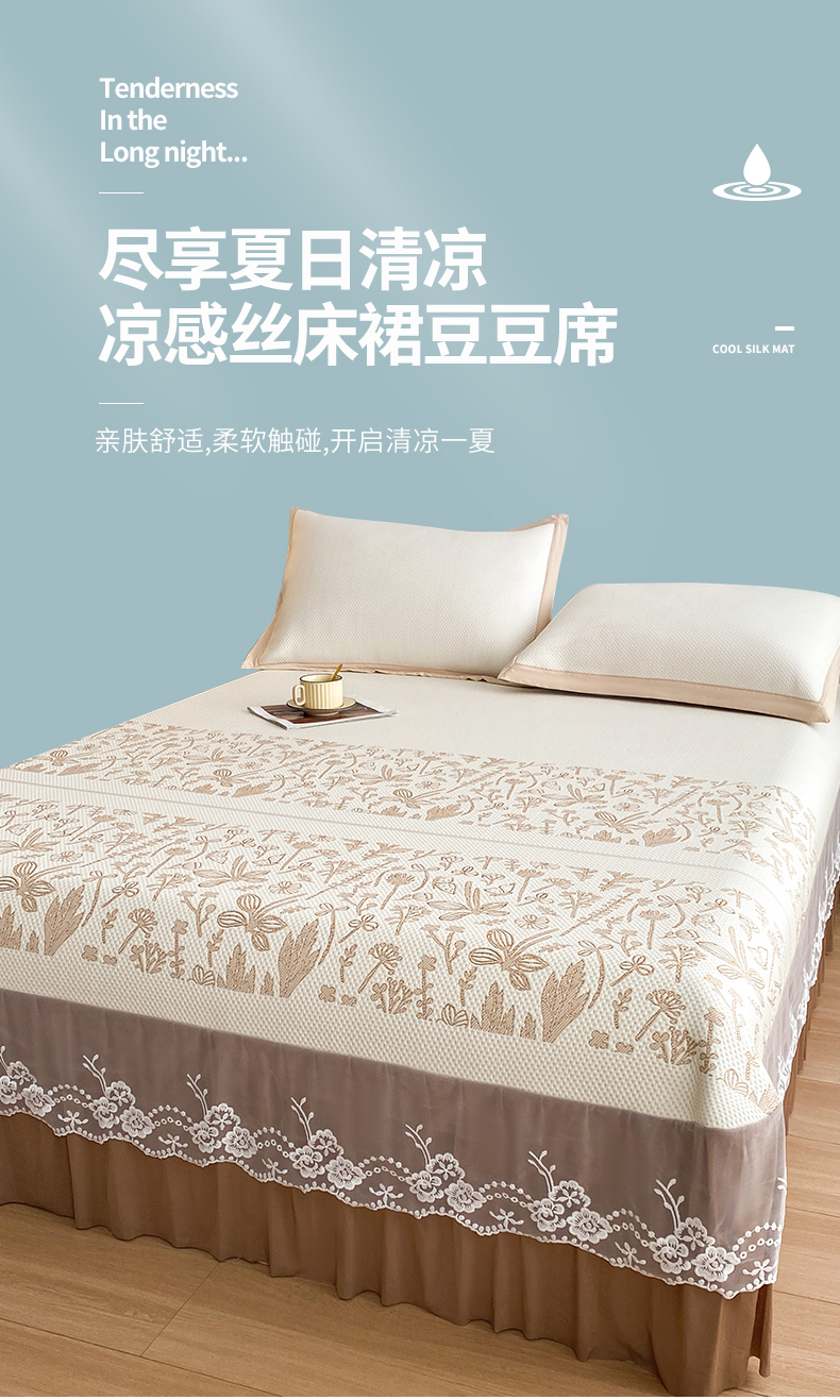 (总)美洲琳 2025新款650克凉豆豆凉席床裙三件套,湖蓝,浅灰,水绿,香槟,心粉