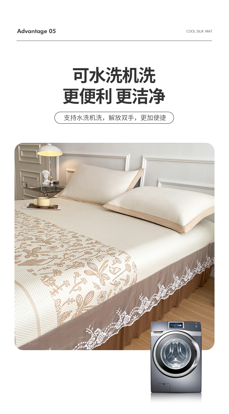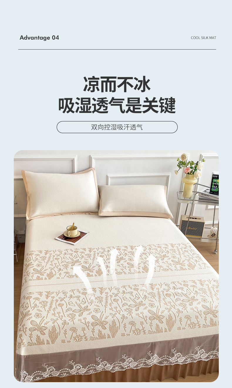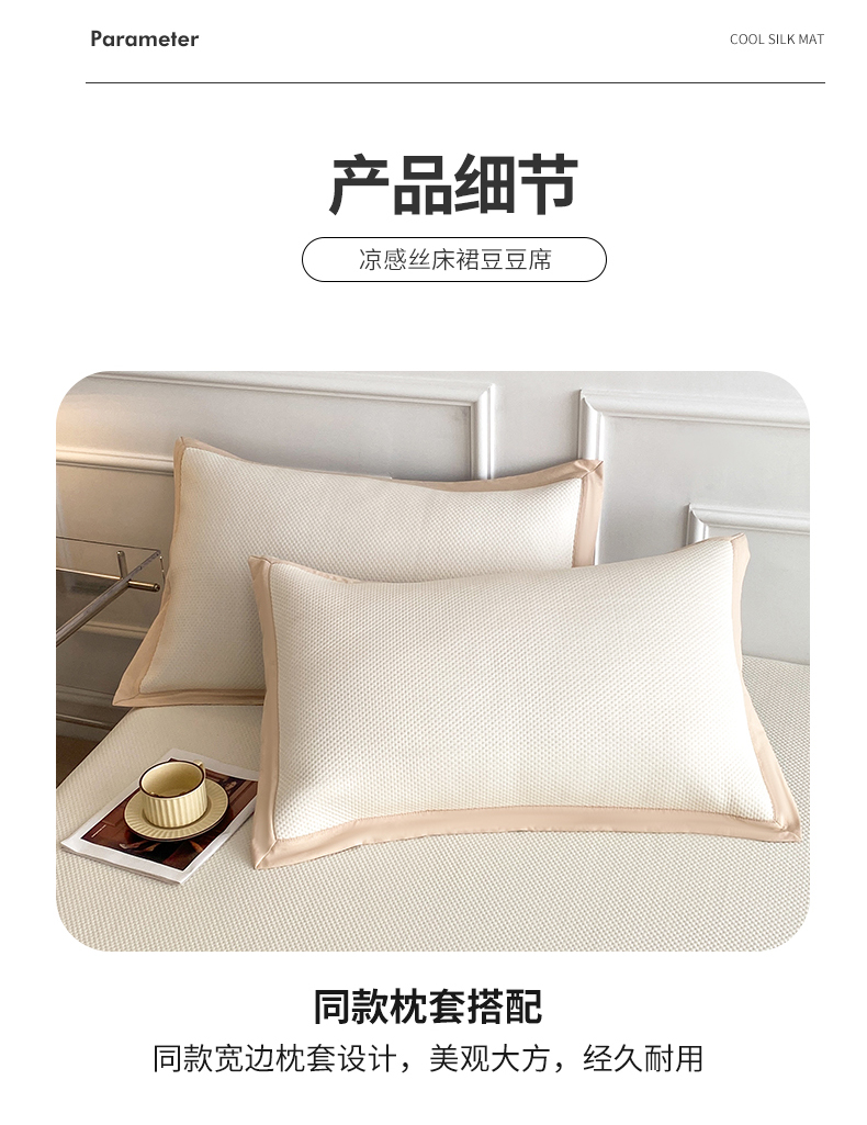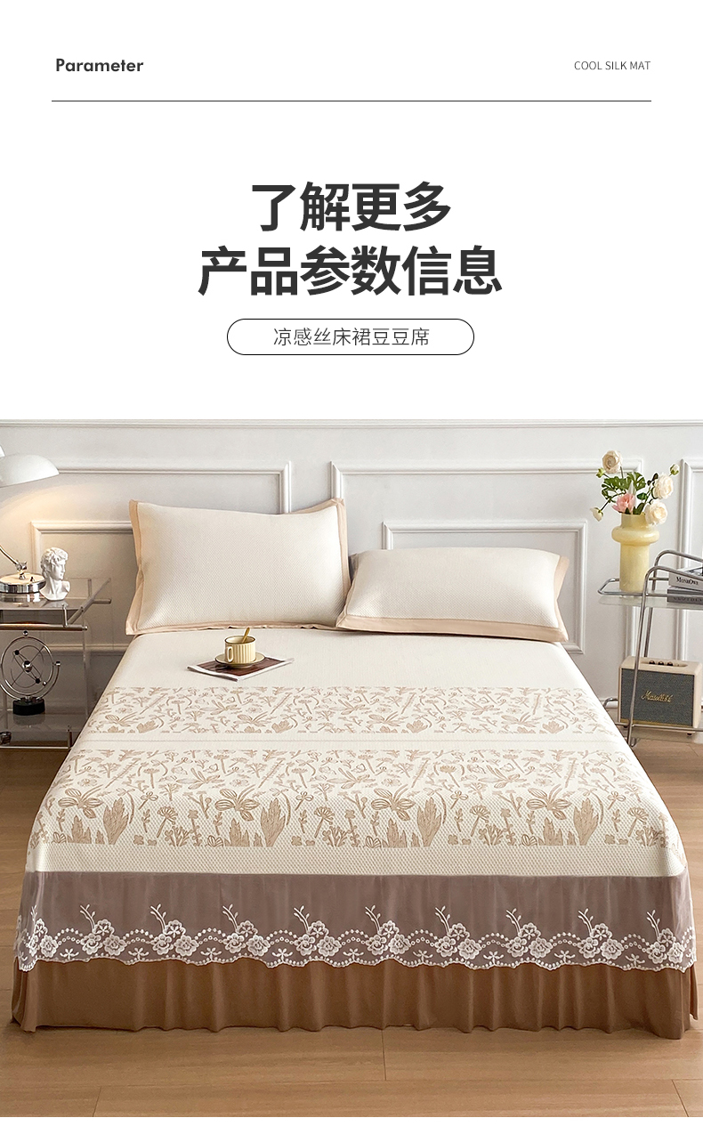 (总)美洲琳 2025新款650克凉豆豆凉席床裙三件套,湖蓝,浅灰,水绿,香槟,心粉