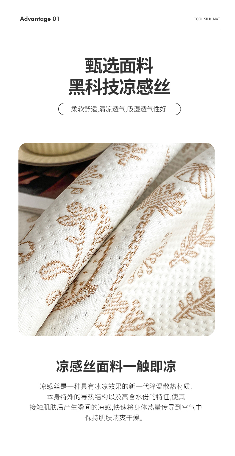 美洲琳 2025新款A类泡小豆冷感豆豆席三件套-碎花剪影(提供买家秀) 碎花剪影-咖