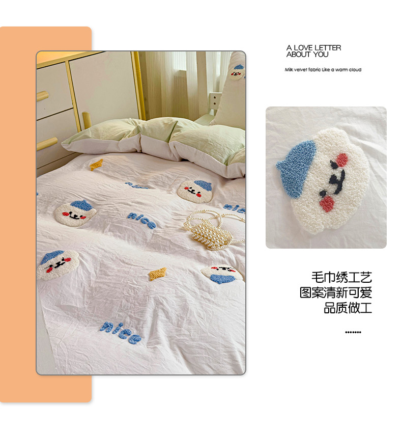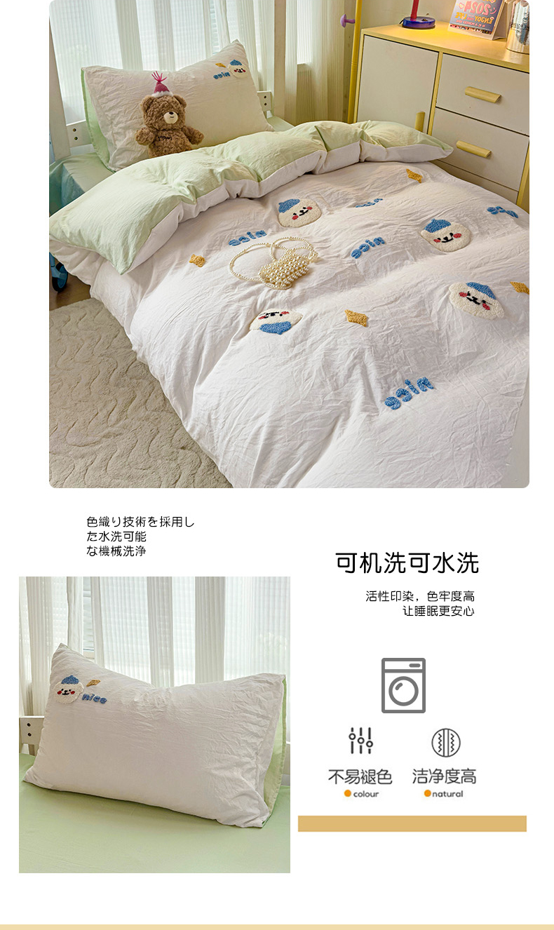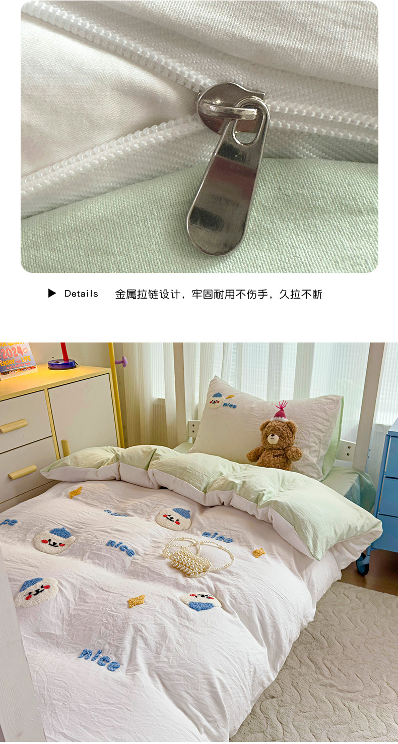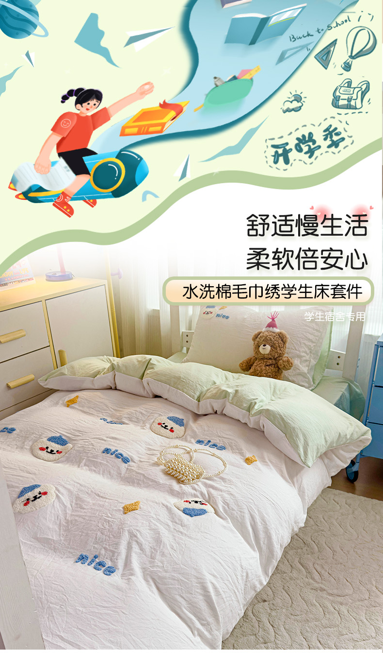 当前位置: 91家纺网 > 商品网购 > 床品套件 > 三件套 > 韩巢家纺 2024新款学生宿舍寝室上下铺超柔水洗棉床单被套三件套-哈哈狗(提供卖家秀) 哈哈狗白绿