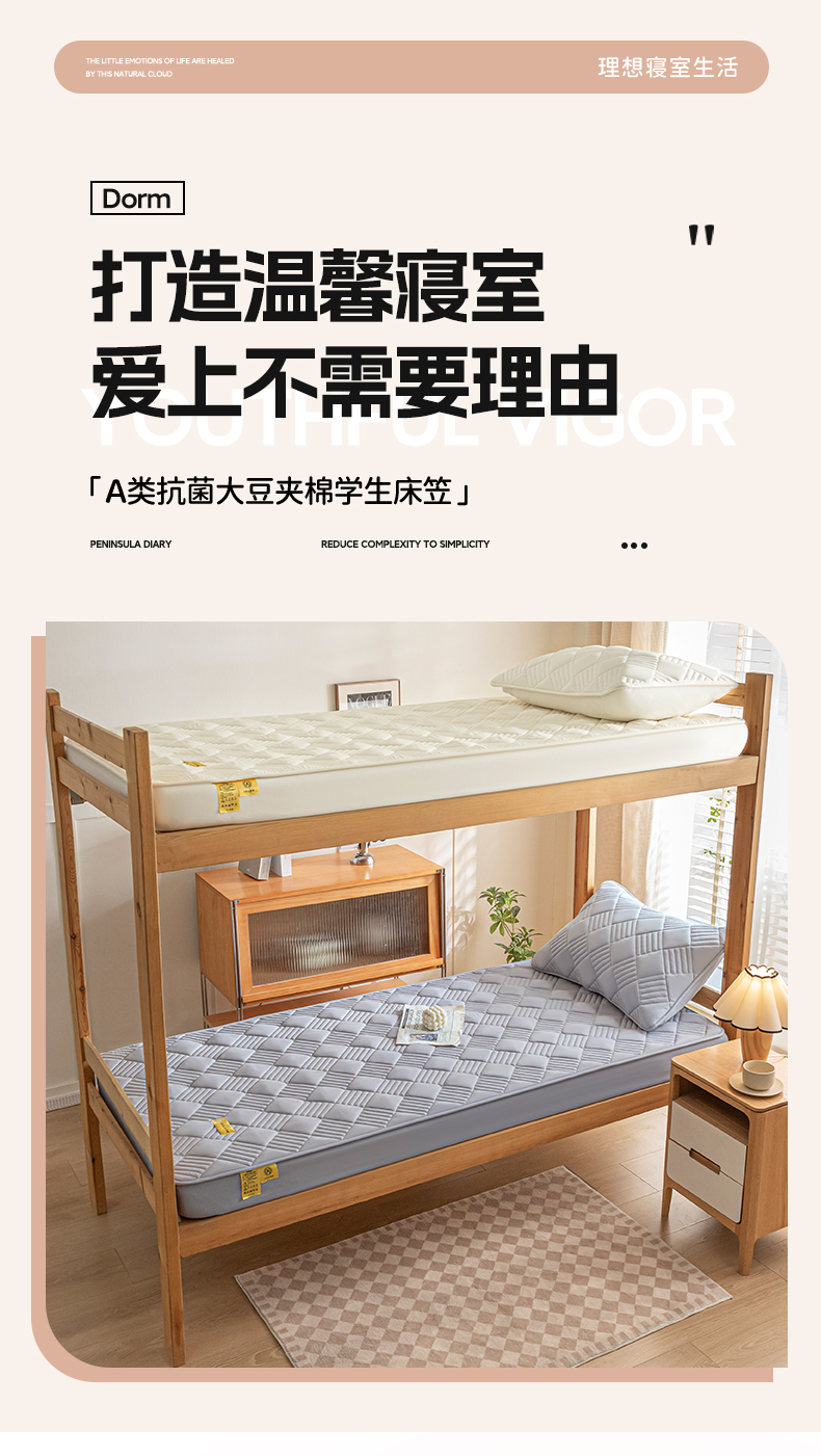 • 91家纺网 家纺一手货源 找家纺 芬晴 2024新款A类抗菌大豆夹棉学生床笠夹棉床笠宿舍床笠跨境电商外贸床笠 旋律-星灰